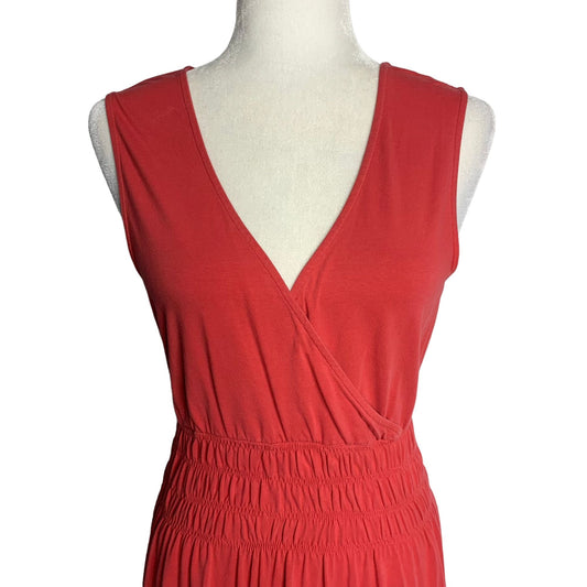 Eddie Bauer Surplice Top Midi Dress S Peach Pink Elastic Waist V Neck Stretchy