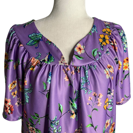 Vintage Anthony Richards MuuMuu House Dress M Purple Floral Pockets Short Sleeve