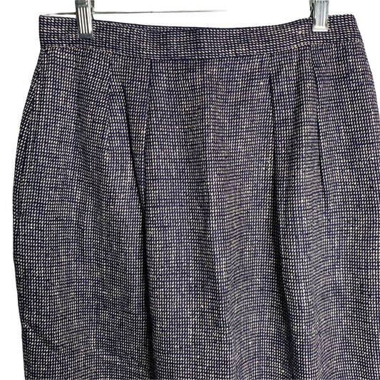 Anne Klein Silk Pencil Skirt S Navy Blue Pockets Lined Pleated Front Zipper