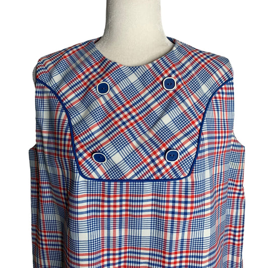 Vintage 60s Lady in Waiting Maternity Dress M/L Red Blue Plaid Sleeveless Zipper