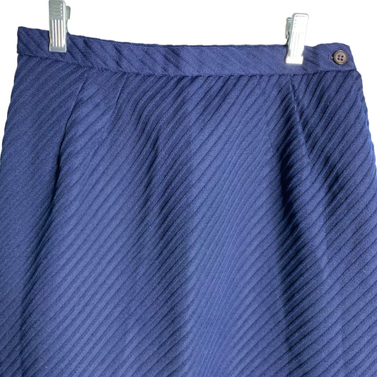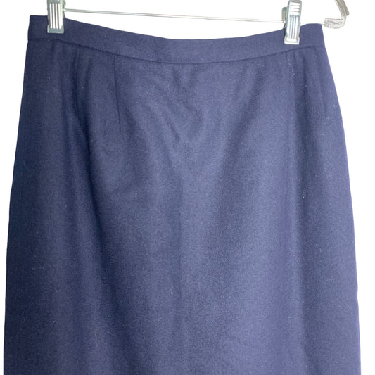 Vintage Richard Evans Pencil Skirt S Navy Blue Wool Blend Lined Button Zip