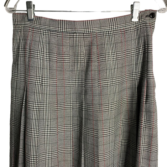 Vintage 90s EH Woods Pleated Midi Dress 10 Black White Plaid Lined Button Zip