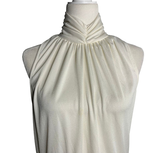 Vintage 70s Pellini After 5 Midi Dress M White Sleeveless High Neck Elastic