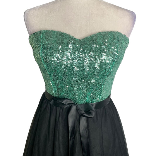 Windsor Strapless Party Prom Dress 11 Green Black Sequins Midi Tulle Tie Waist