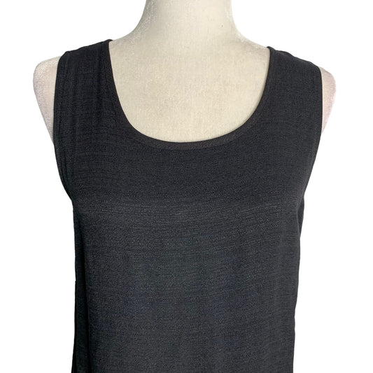 Vintage 90s Surf Turf Rayon Maxi Dress 12 Black Sleeveless Round Neck Pullover