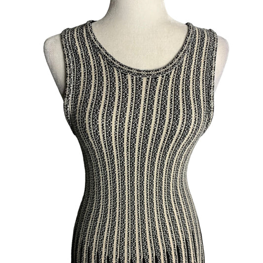 MAK Sleeveless Midi Knit Sweater Dress M Cream Black Stripes Pleated Zipper