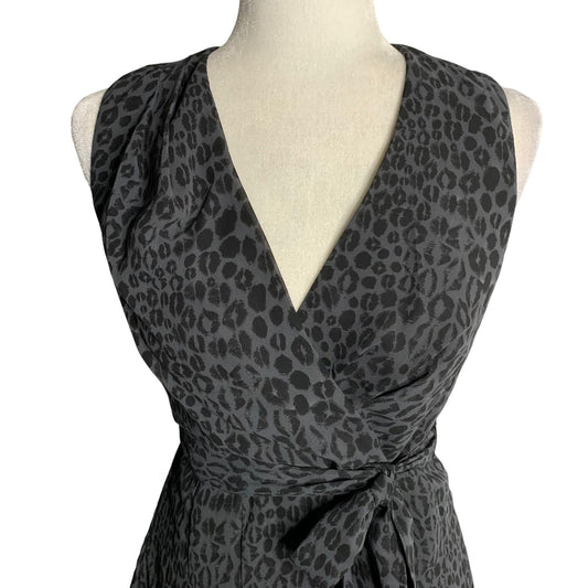Kirna Zabete for Target Faux Wrap Dress 6 Grey Leopard Print Chiffon Lined Zip