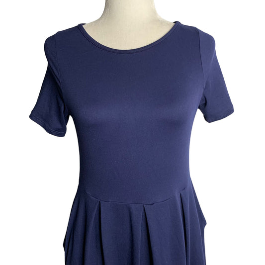 24 Seven Comfort Apparel Pleated Midi Dress S Navy Blue Short Sleeves Pockets
