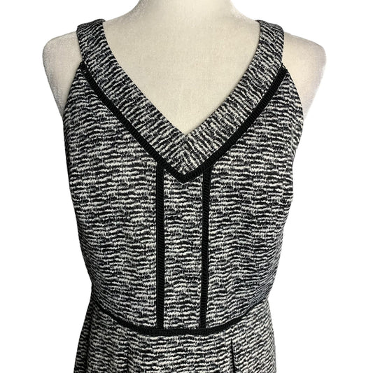 Mossimo Sleeveless Skater Dress M Black White Pleated Zipper V Neck Stretch