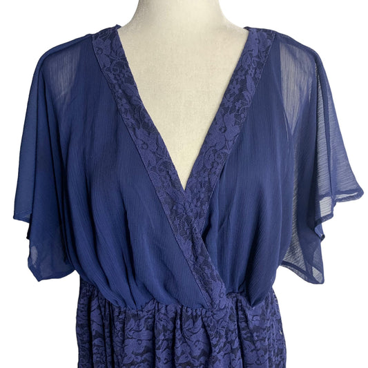 Torrid Lace Inset Chiffon Dress XL Blue Short Sleeves V Neck Elastic Waist