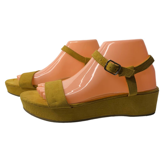 Old Navy Faux Suede Platform Sandals 8 Mustard Yellow Flats Strappy Buckle