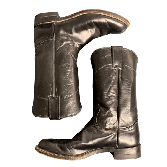 Justin Cora Leather Roper Boots 6A Black Round Toe J Flex Comfort Insoles