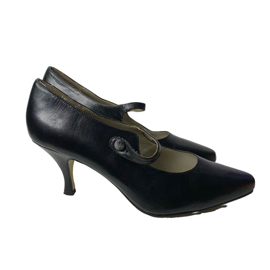 Candid Statements Mary Jane Pumps 9.5m Black Almond Toe Button Strap High Heels
