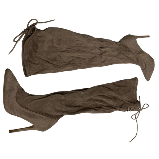 Anne Michelle Rise Up Knee High Boots 8.5 Mocha Brown Faux Suede Stiletto Heel