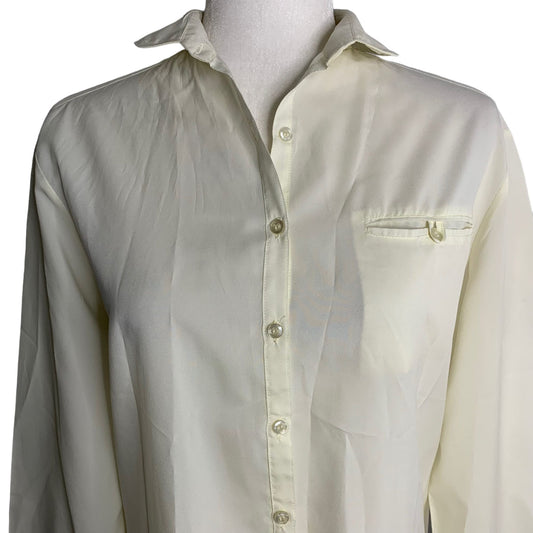 Vintage Button Up Long Sleeves Shirt M Cream Silky Chest Pocket Collared