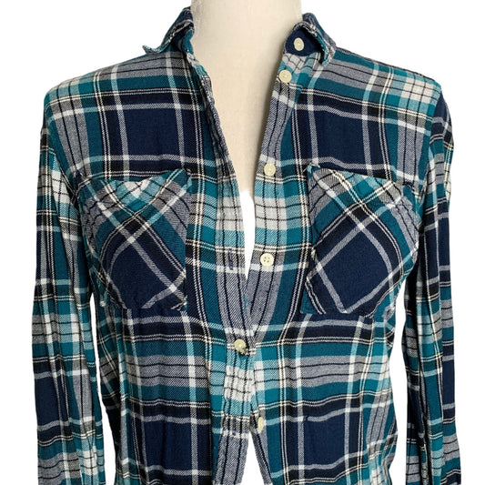 Aeropostale Lightweight Button Up Flannel Shirt S Blue Green Plaid Pockets