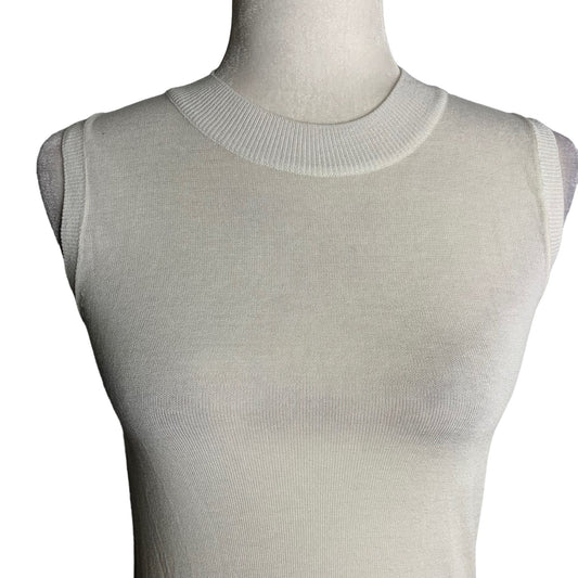 Lightweight Sleeveless Knit Top S White Ribbed Trim Slightly Sheer