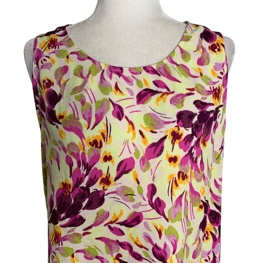 Halogen Sleeveless Tank Top Shell M Cream Purple Floral Round Neck Curved Hem