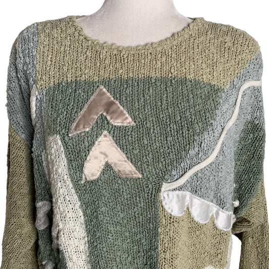 Vintage 90s Boucle Pullover Sweater M Beige Loose Knit Round Neck Long Sleeves