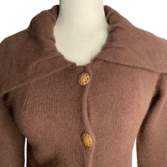 Vintage 90s Urban Outfitters Wool Angora Sweater S Brown Knit Buttons Cardigan