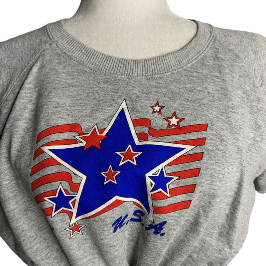 Vintage 80s Cropped Short Sleeve Sweatshirt L Grey Crewneck Drawstring Stars