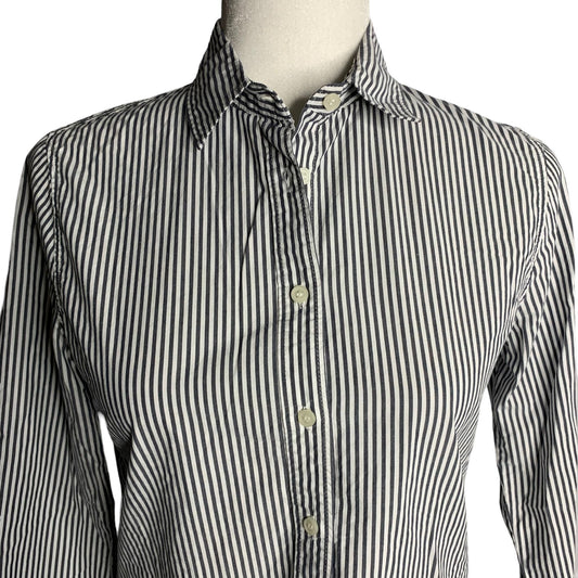 Button Up Long Sleeve Dress Shirt S White Grey Stripes Collar Career Wear