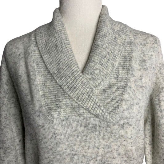 Madewell Shawl Collar Wool Sweater S Grey Marled Knit Pullover Puff Sleeve NEW