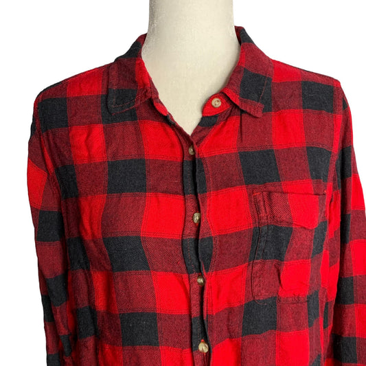 Lucky Brand Button Up Flannel Shirt M Red Buffalo Check Long Sleeves Pocket