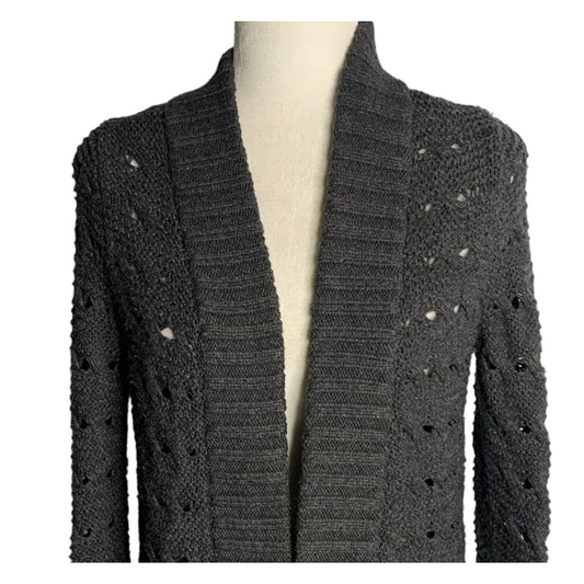 Ann Taylor Chunky Knit Cardigan Sweater S Grey Open Front Loose Long Sleeves