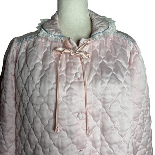 Vintage 80s Appel Quilted Bed Jacket Large Light Pink Lace Polyester Buttons