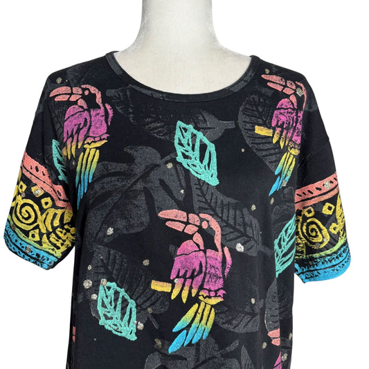 Vintage Hand Painted T Shirt Colorful Tropical Bird Large Black Short Sleeve