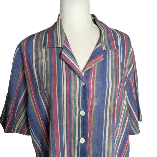 Vintage 90s Striped Button Up Shirt XL Short Sleeve Lightweight Collared