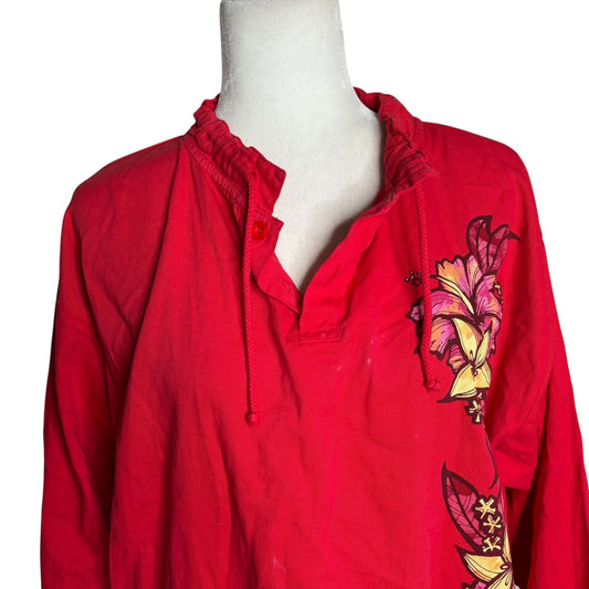 Vintage Y2K Crazy Shirts Hawaii Pullover Top Medium Red Cotton Pockets Jacket