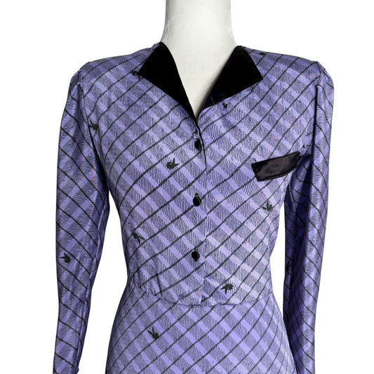 Vintage 80s Vivians Playboy Button Up Shirt Dress Medium Purple Check Bunny