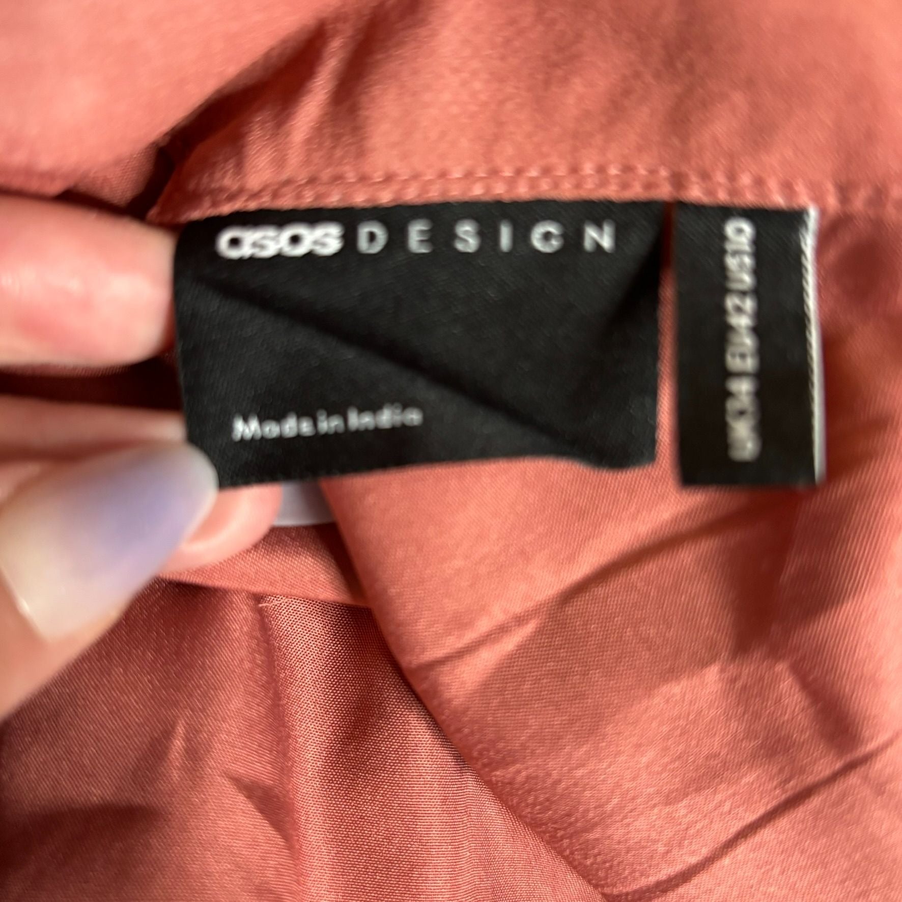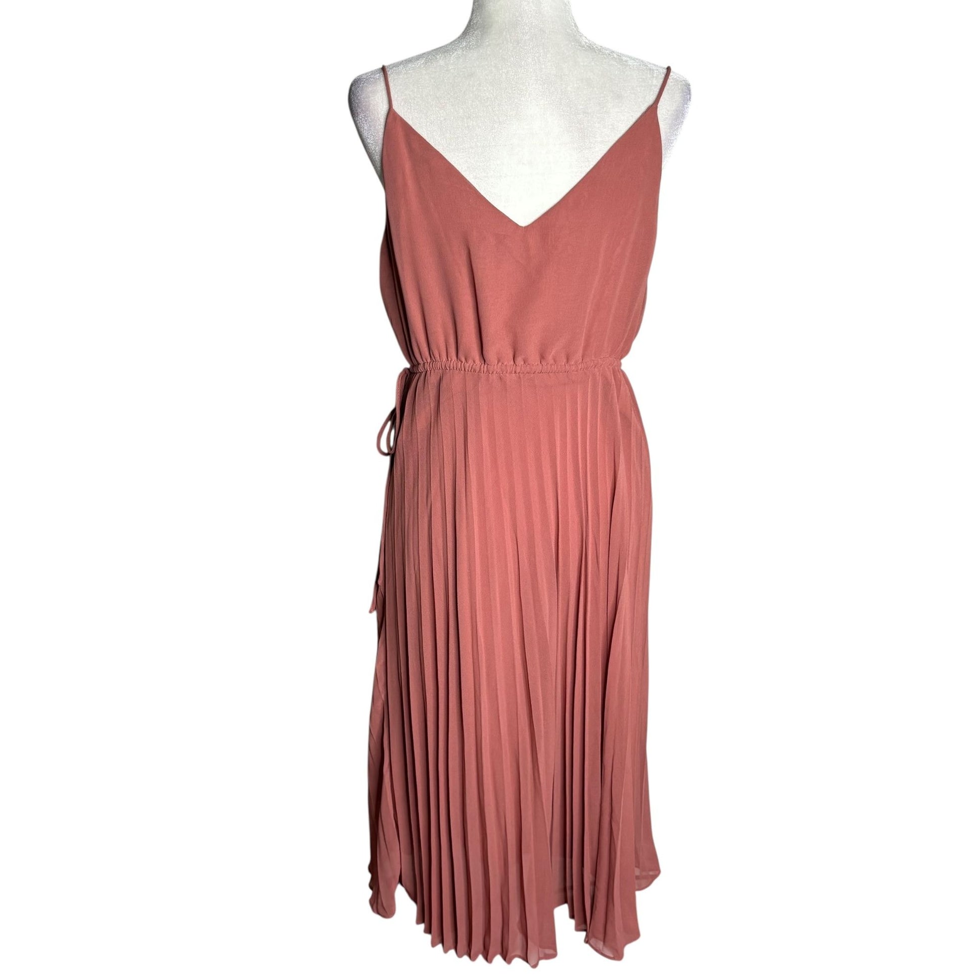 Asos Pleated Midi Dress Size 10 Rose Pink Spaghetti Straps V Neck Lined Elastic