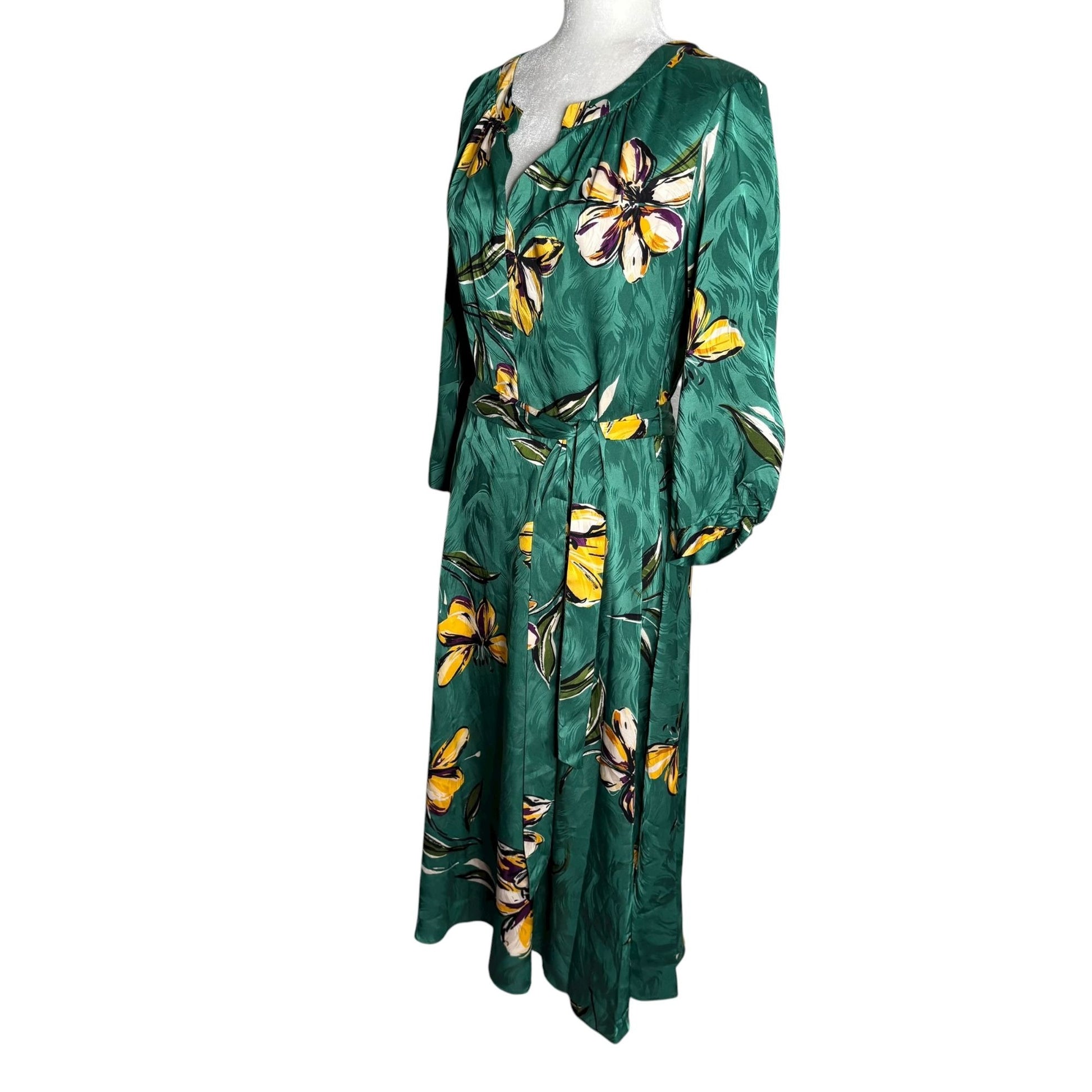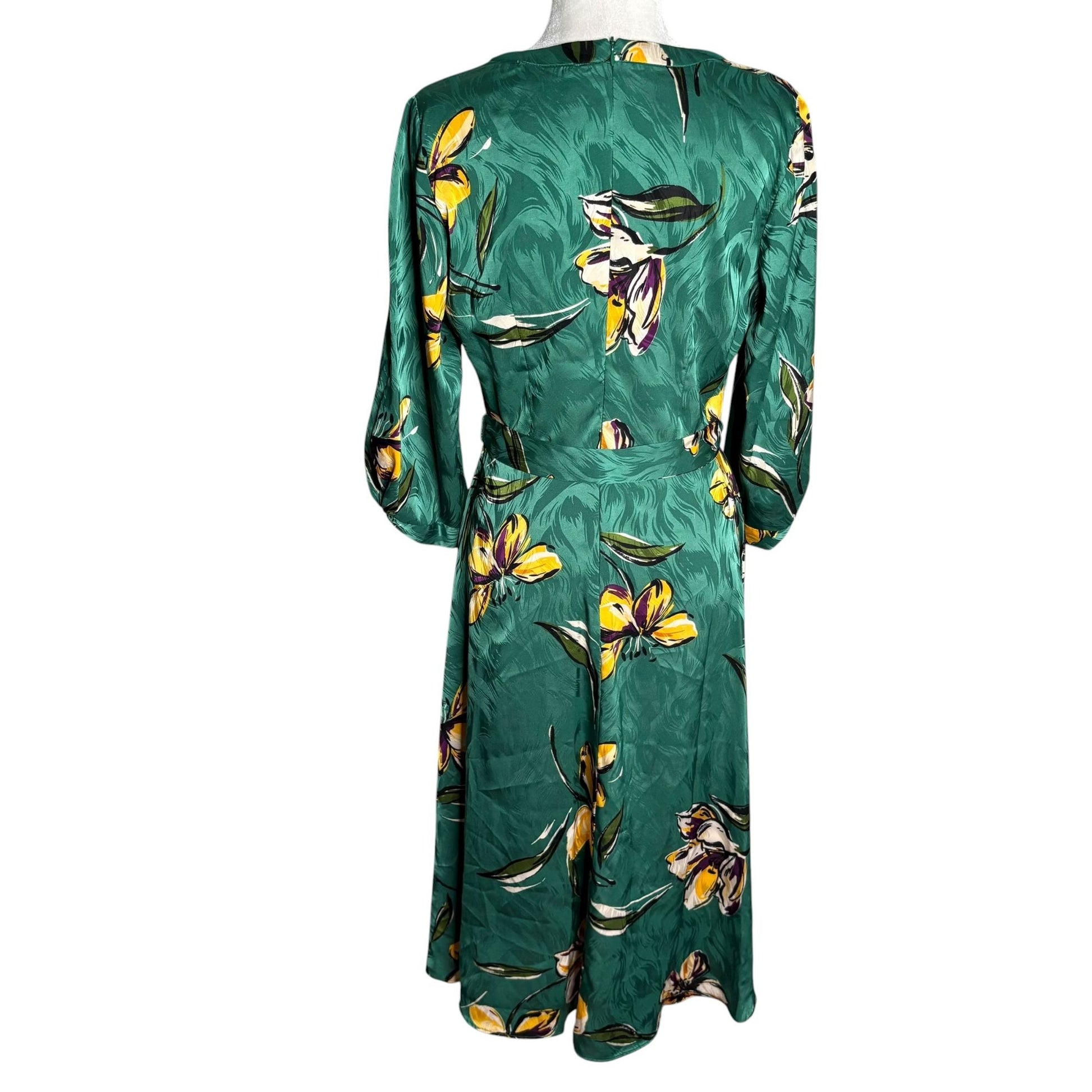Donna Morgan Floral Midi Dress Size 6 Long Sleeves Tie Belt Waist V Neck