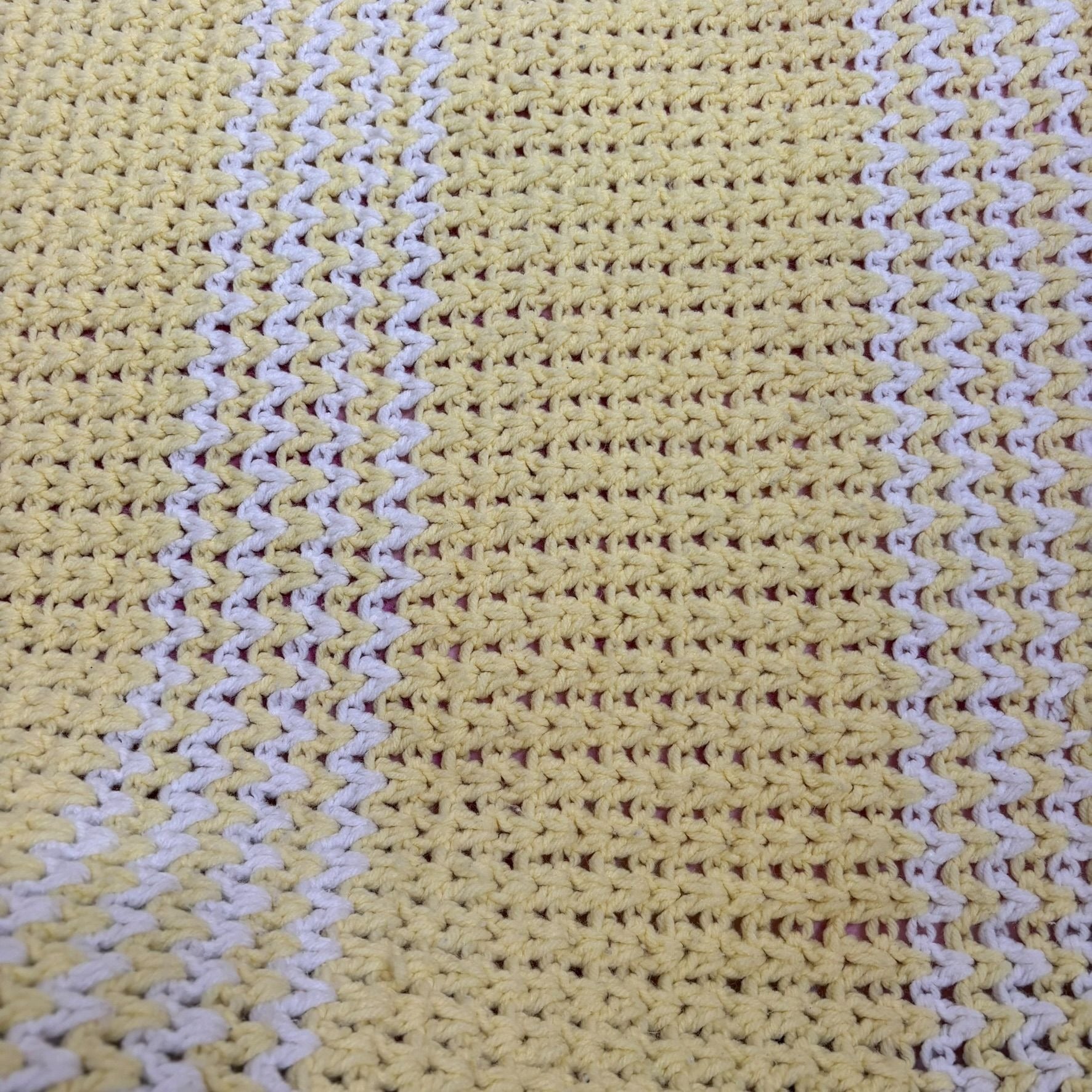 Handmade Yellow White Crochet Throw Baby Blanket Yarn Fringe Edges 35 x 60