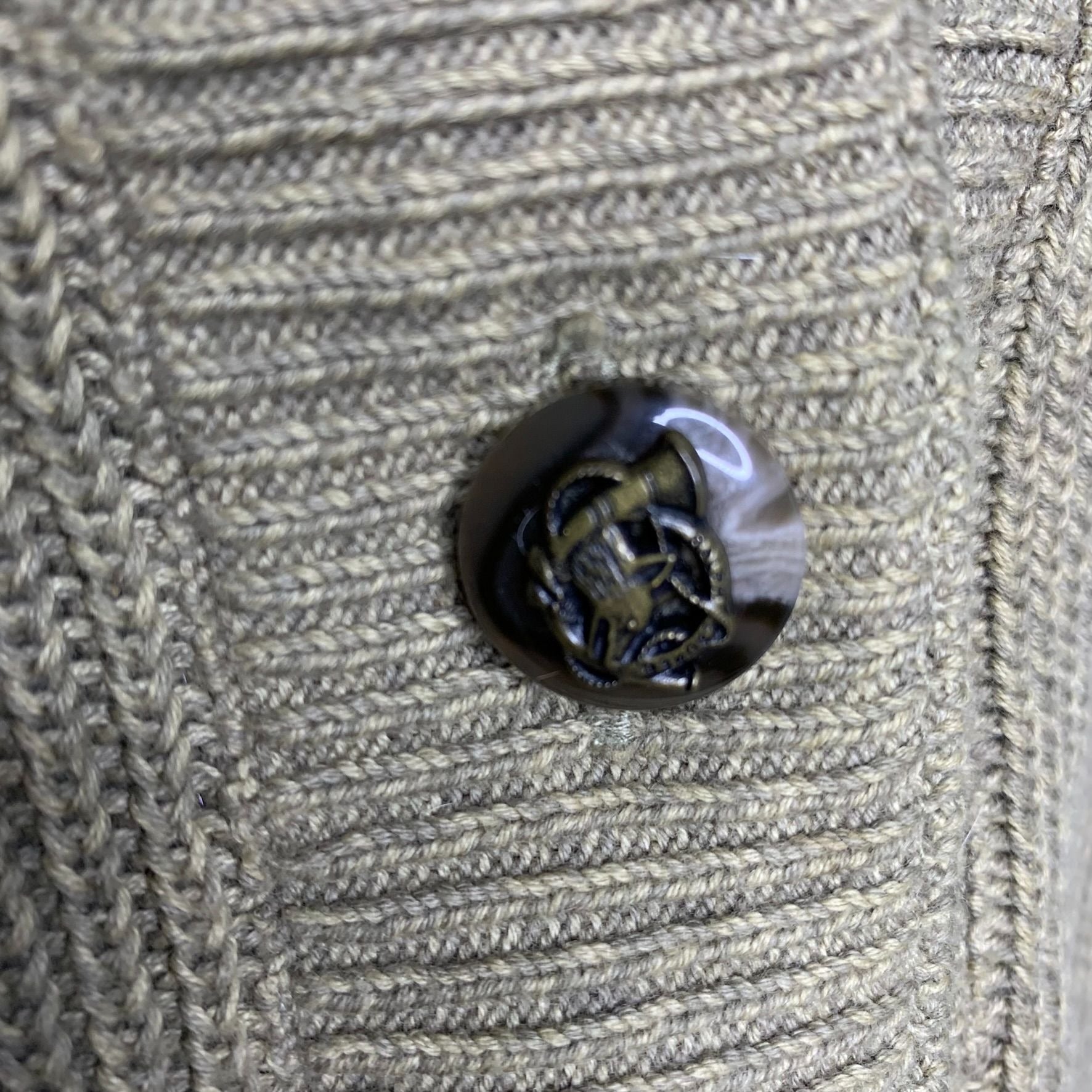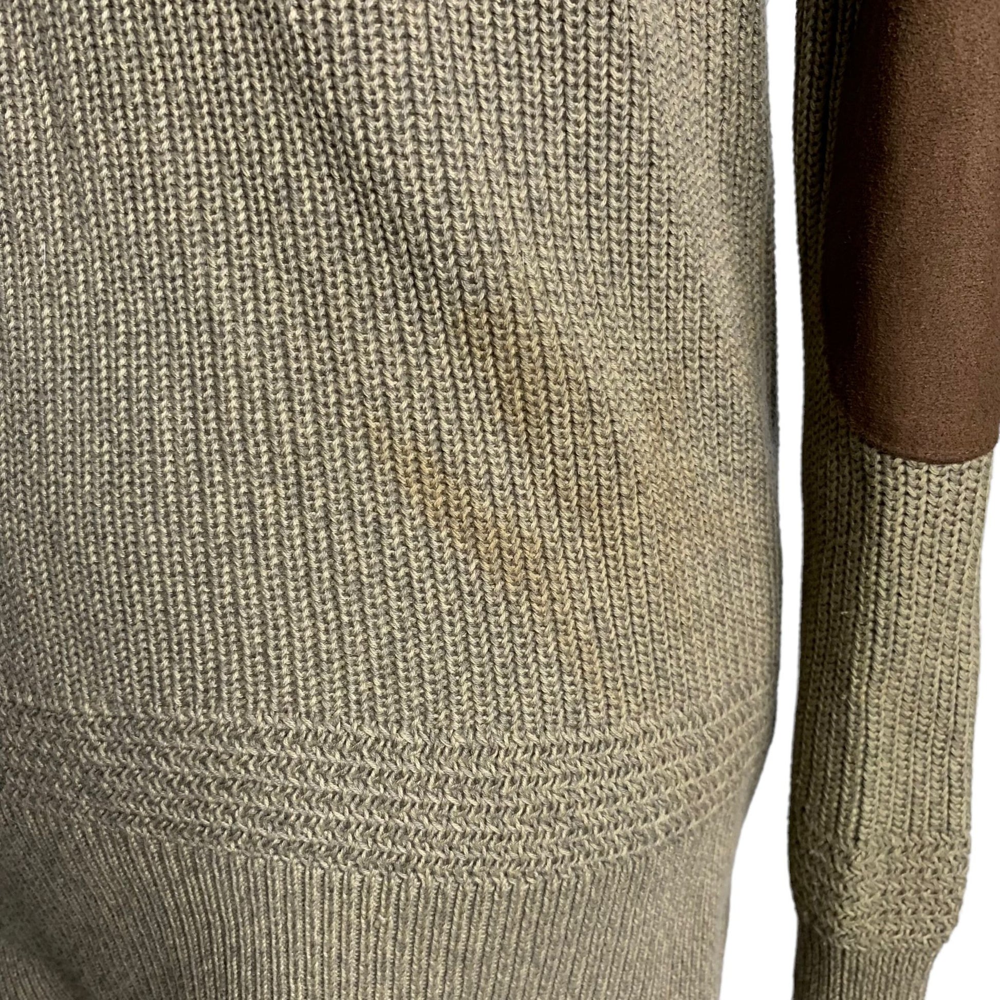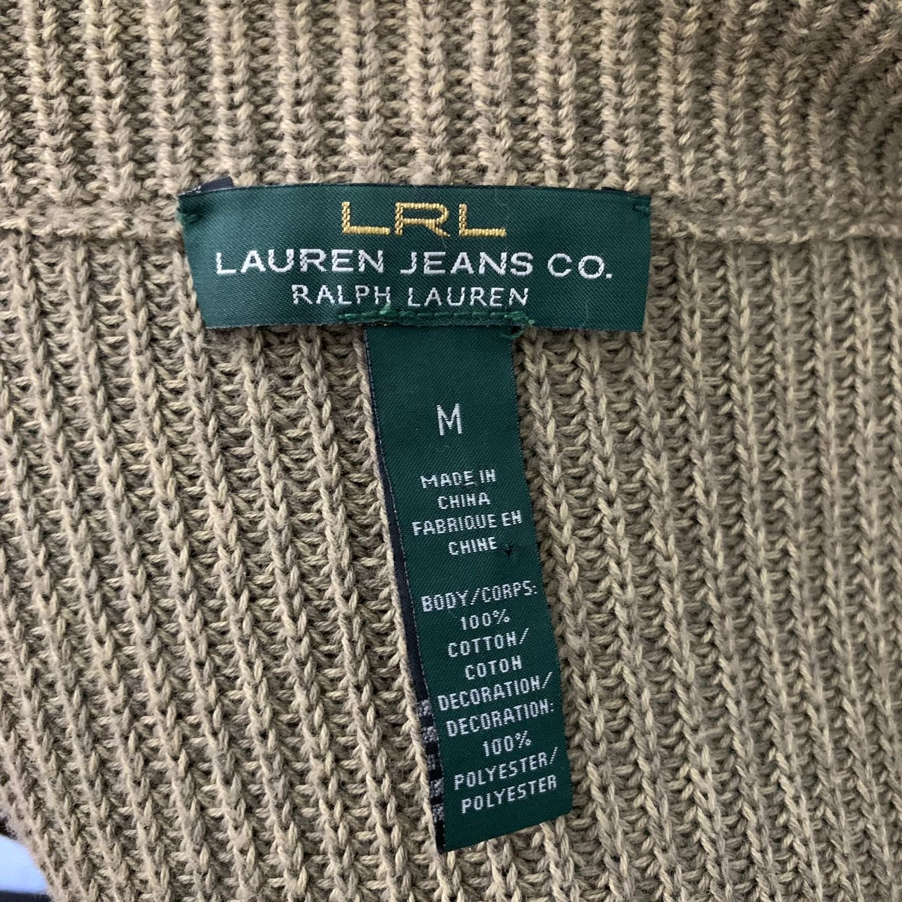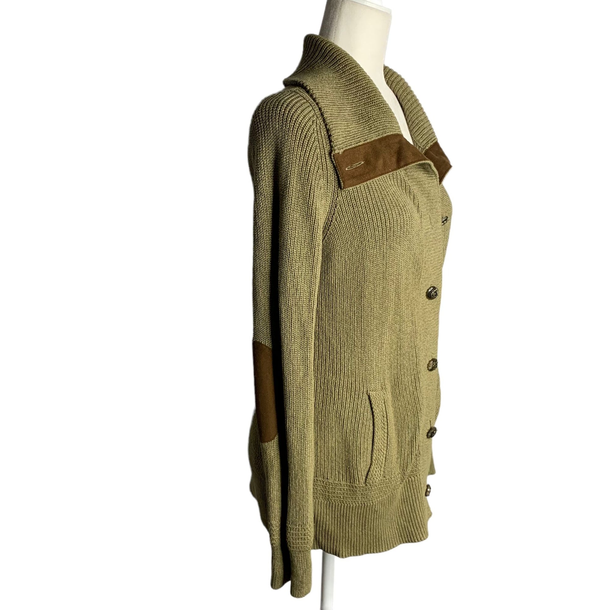 Lauren Ralph Lauren Cardigan Sweater M Green Brown Button Up Pockets Elbow Patch