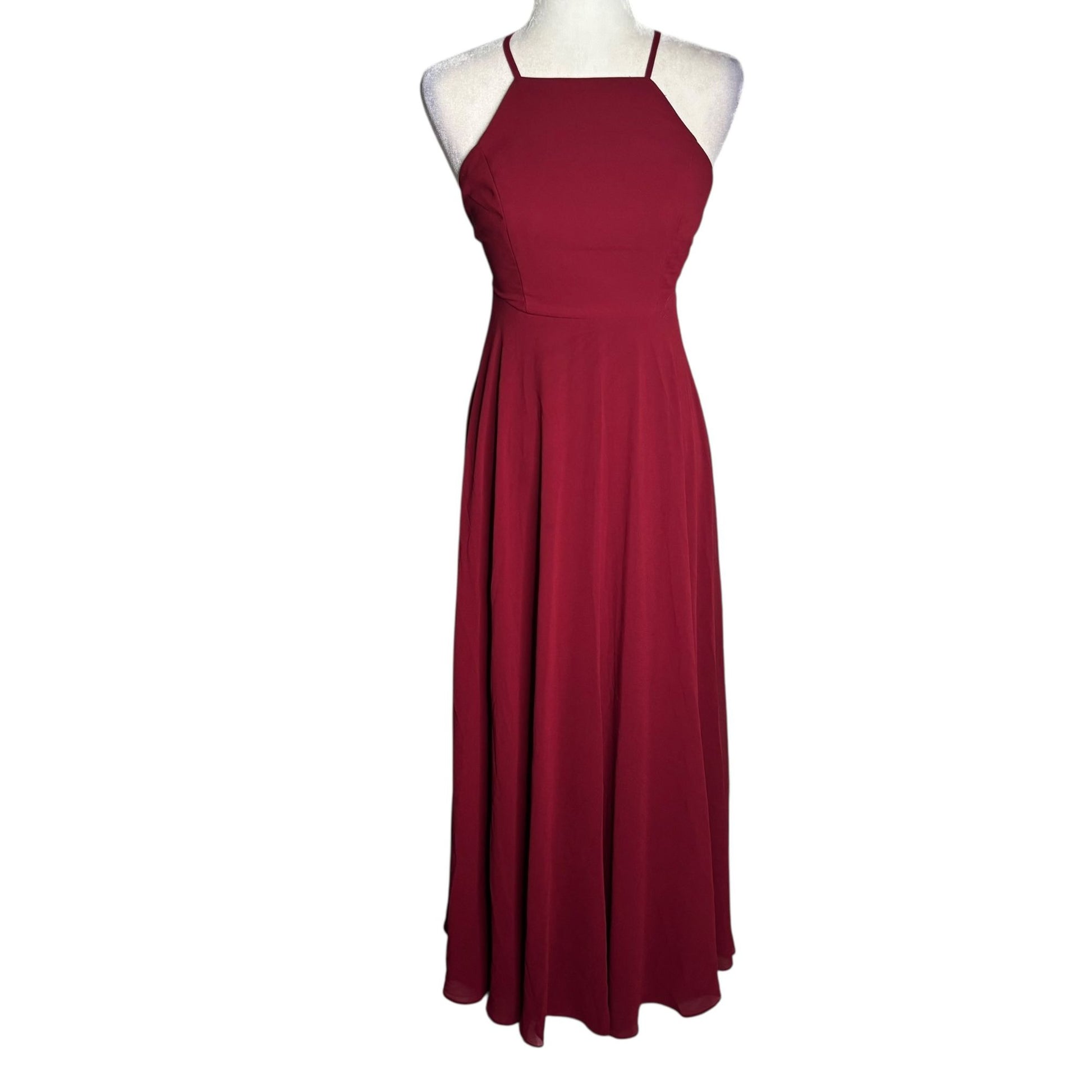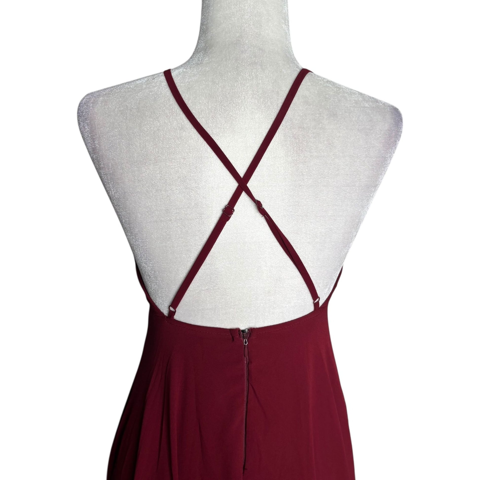 Lulus Burgundy Red Maxi Formal Dress XS Crisscross Back Strap Lined Sleeveless