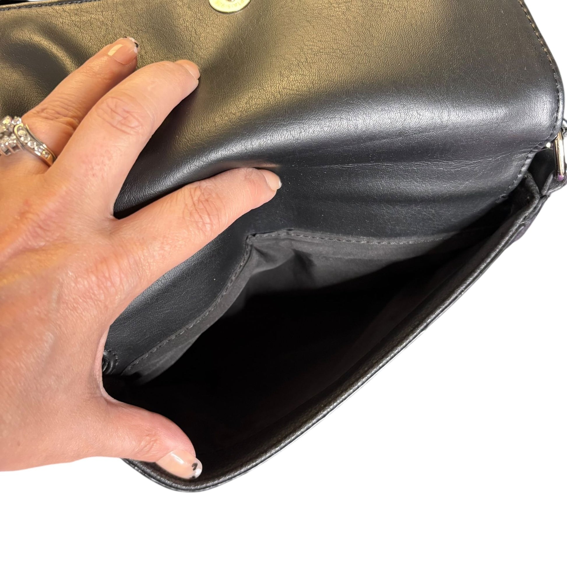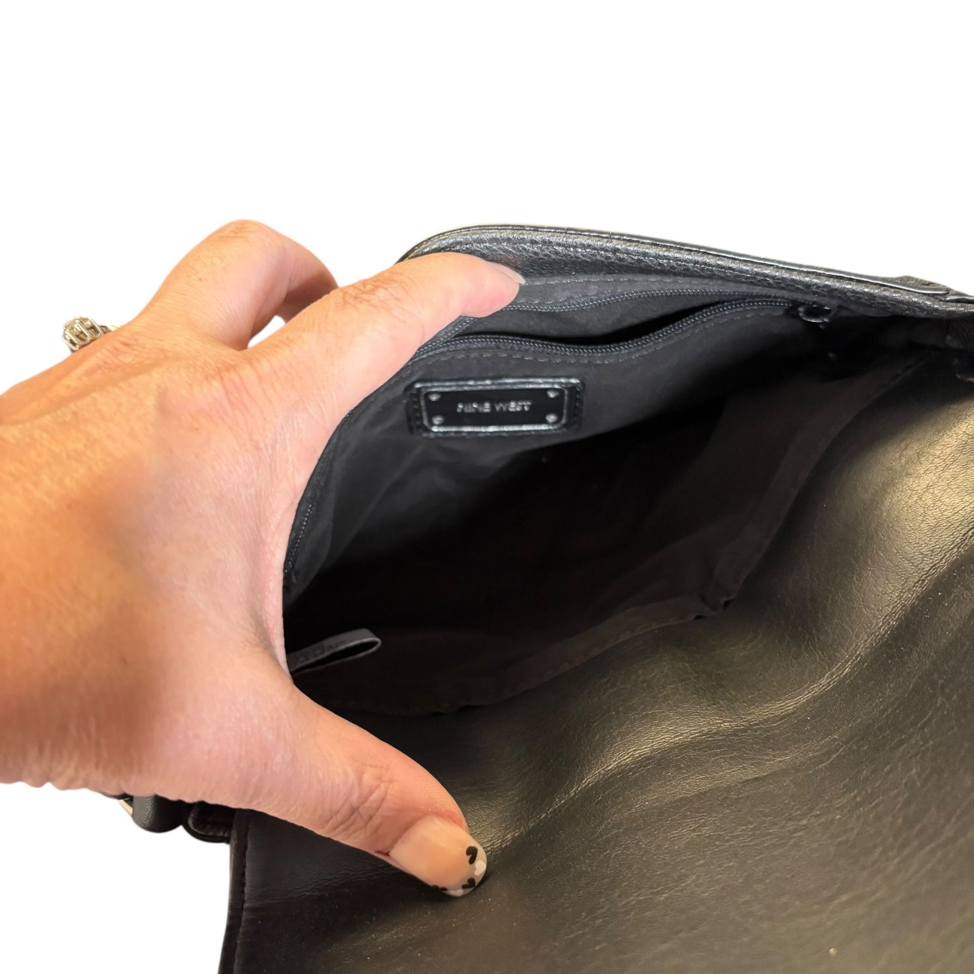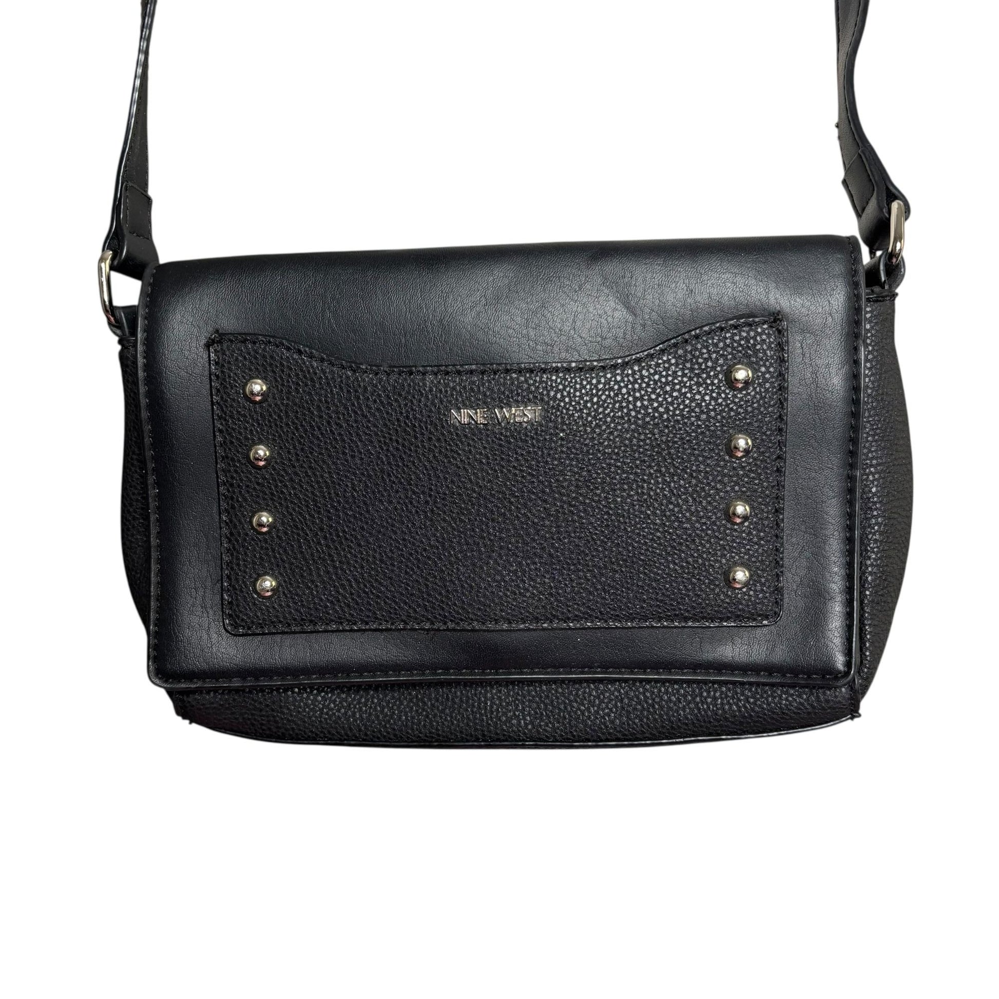 Nine West Black Crossbody Bag Faux Leather Studded Front Flap Large Pockets