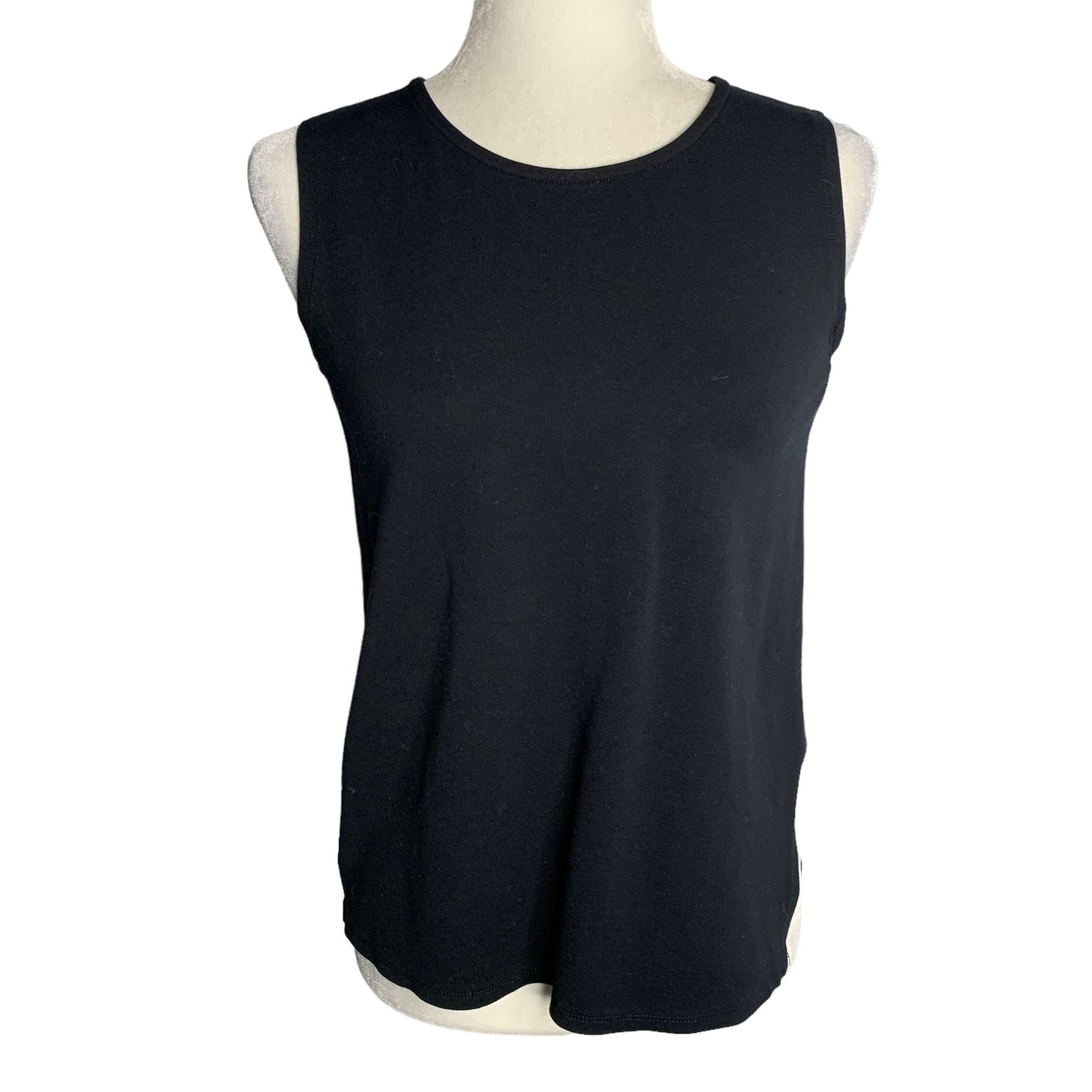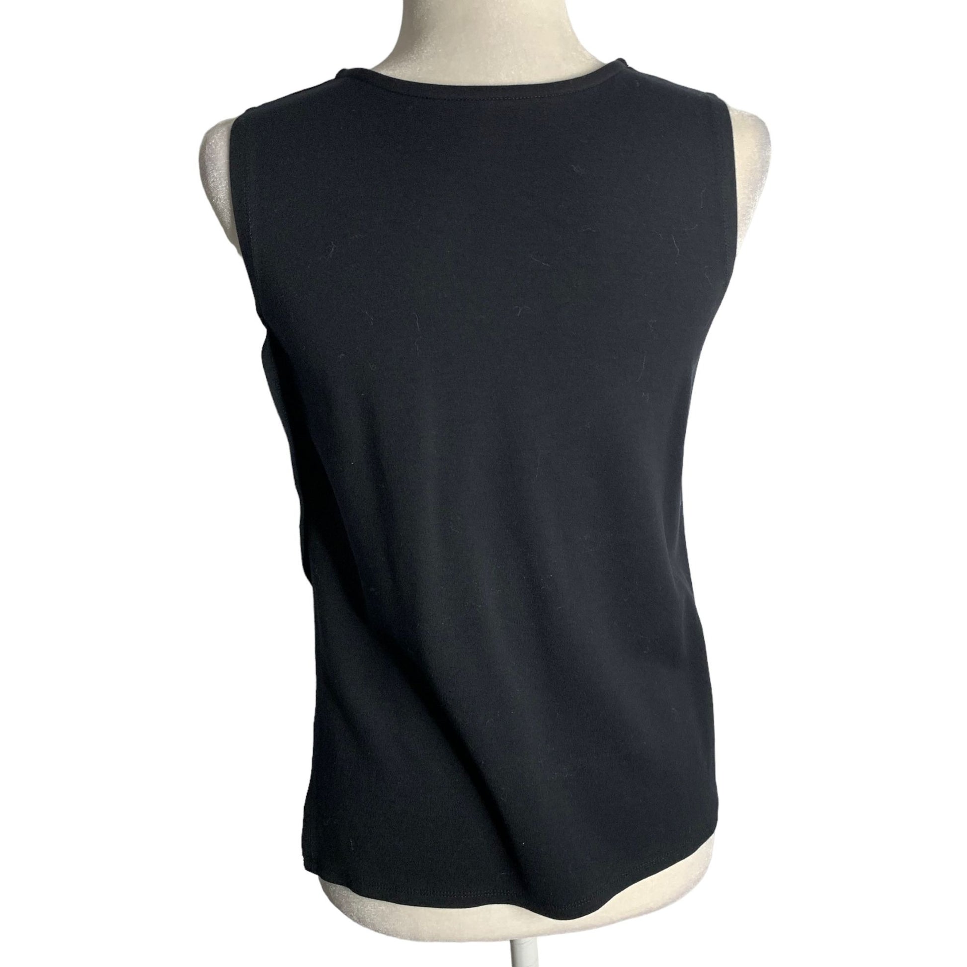 Open Side Athletic Tank Top S Black Sleeveless Round Neck Stretch Knit Wrap