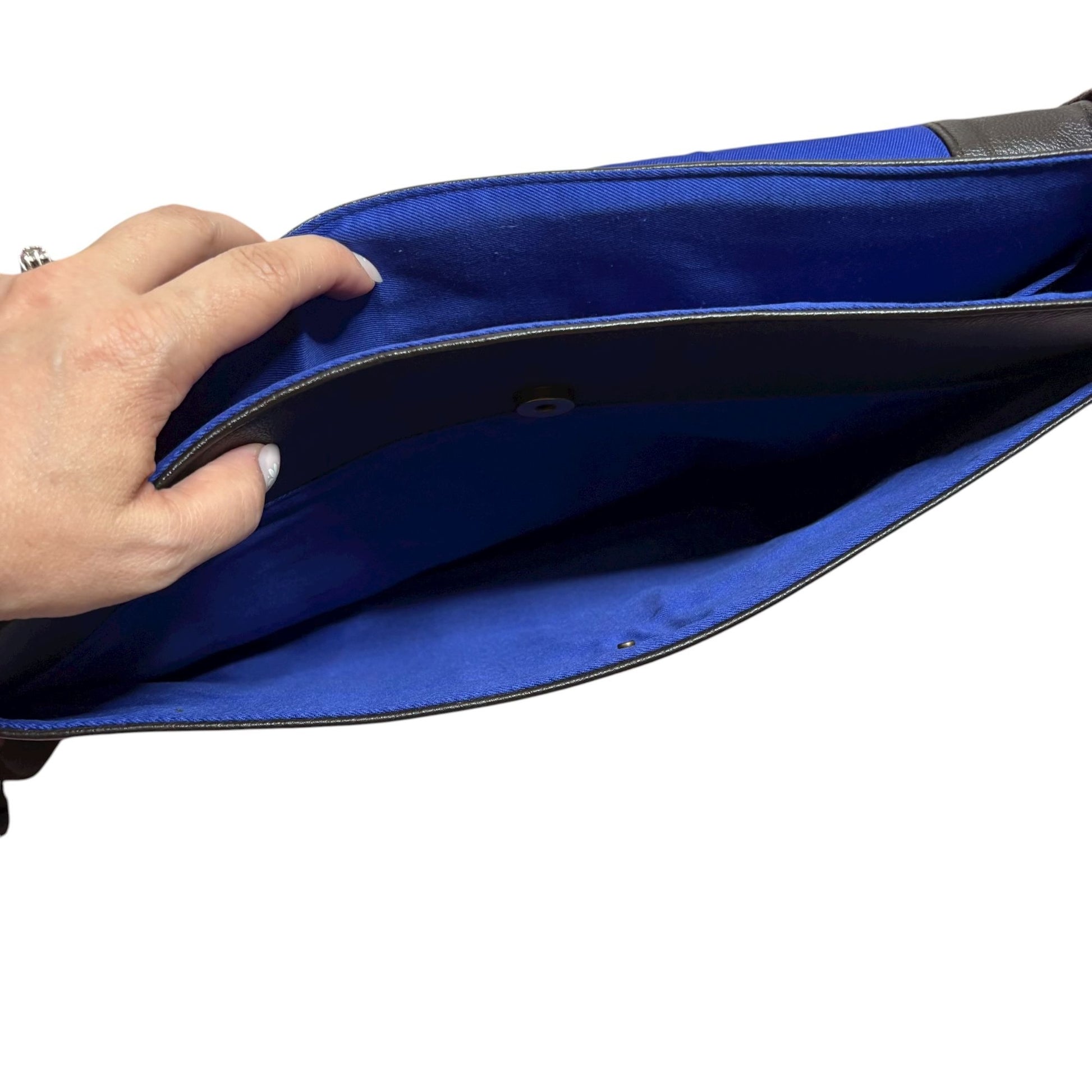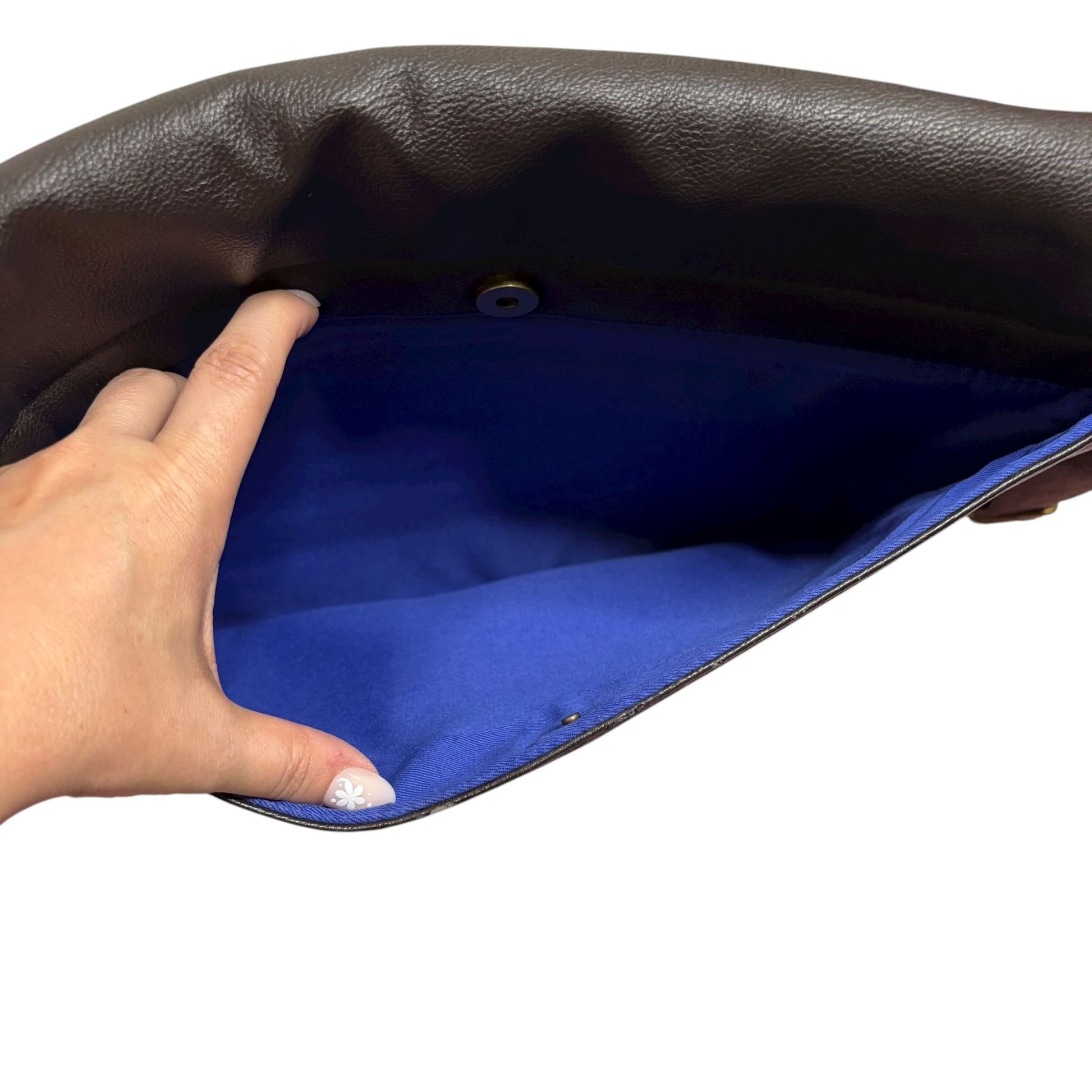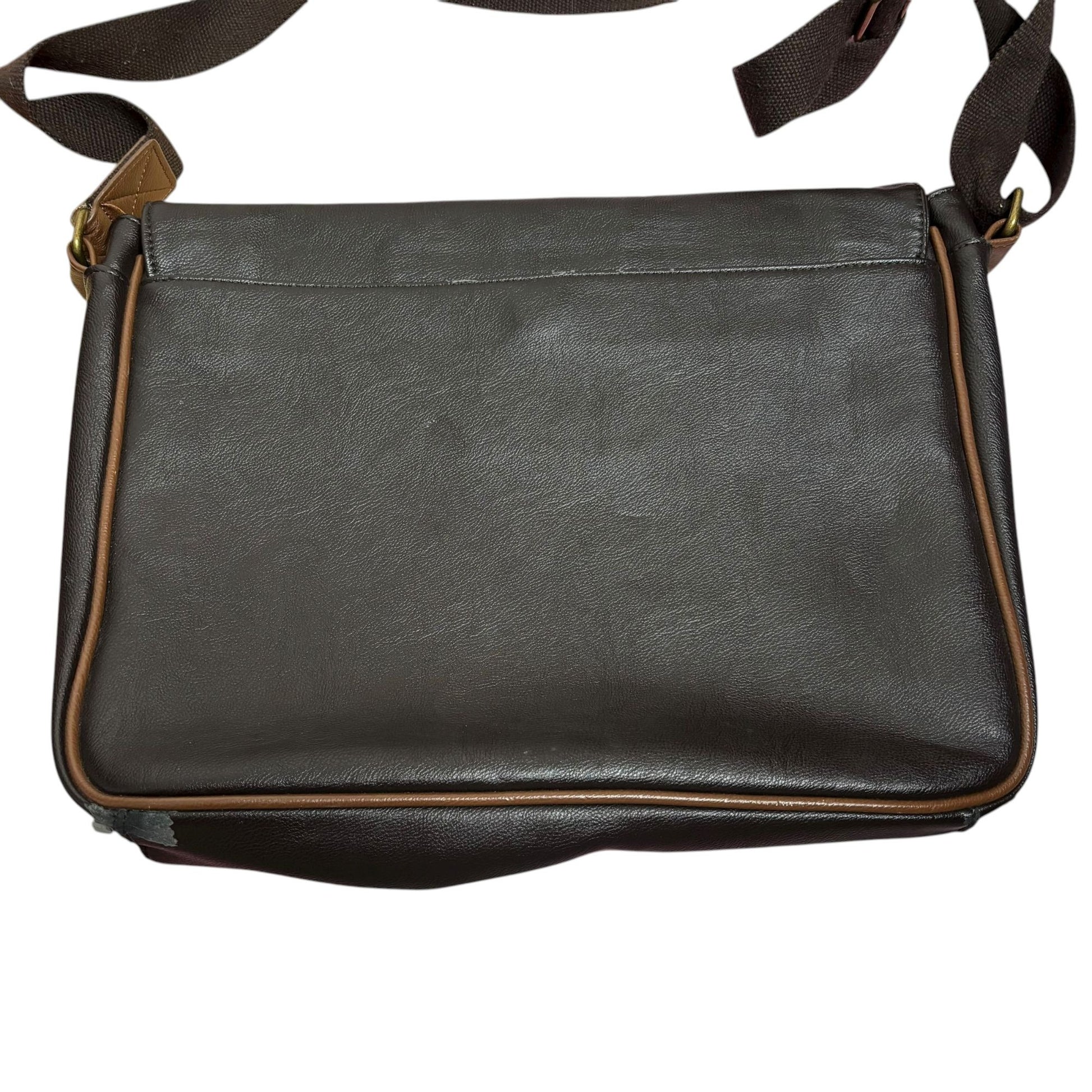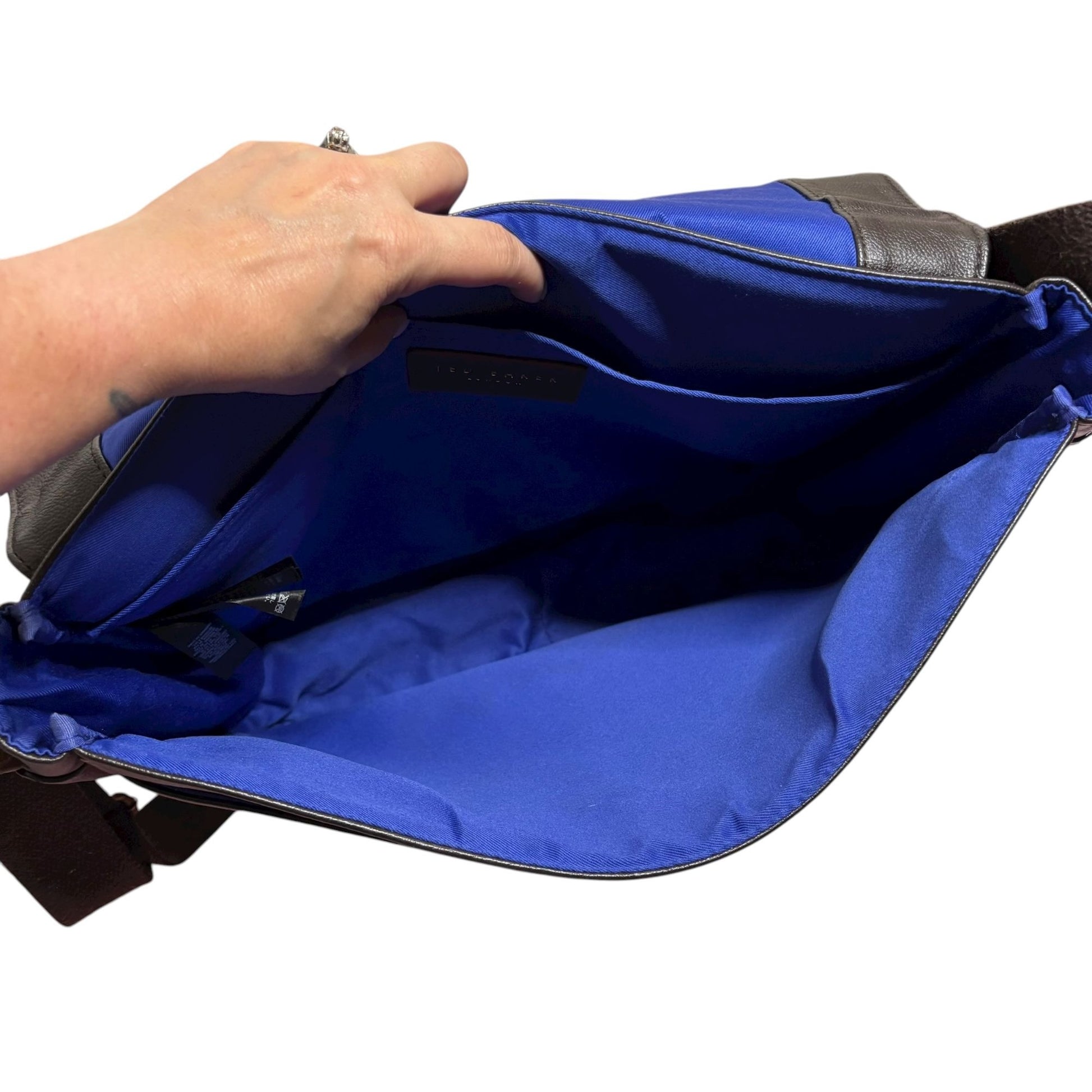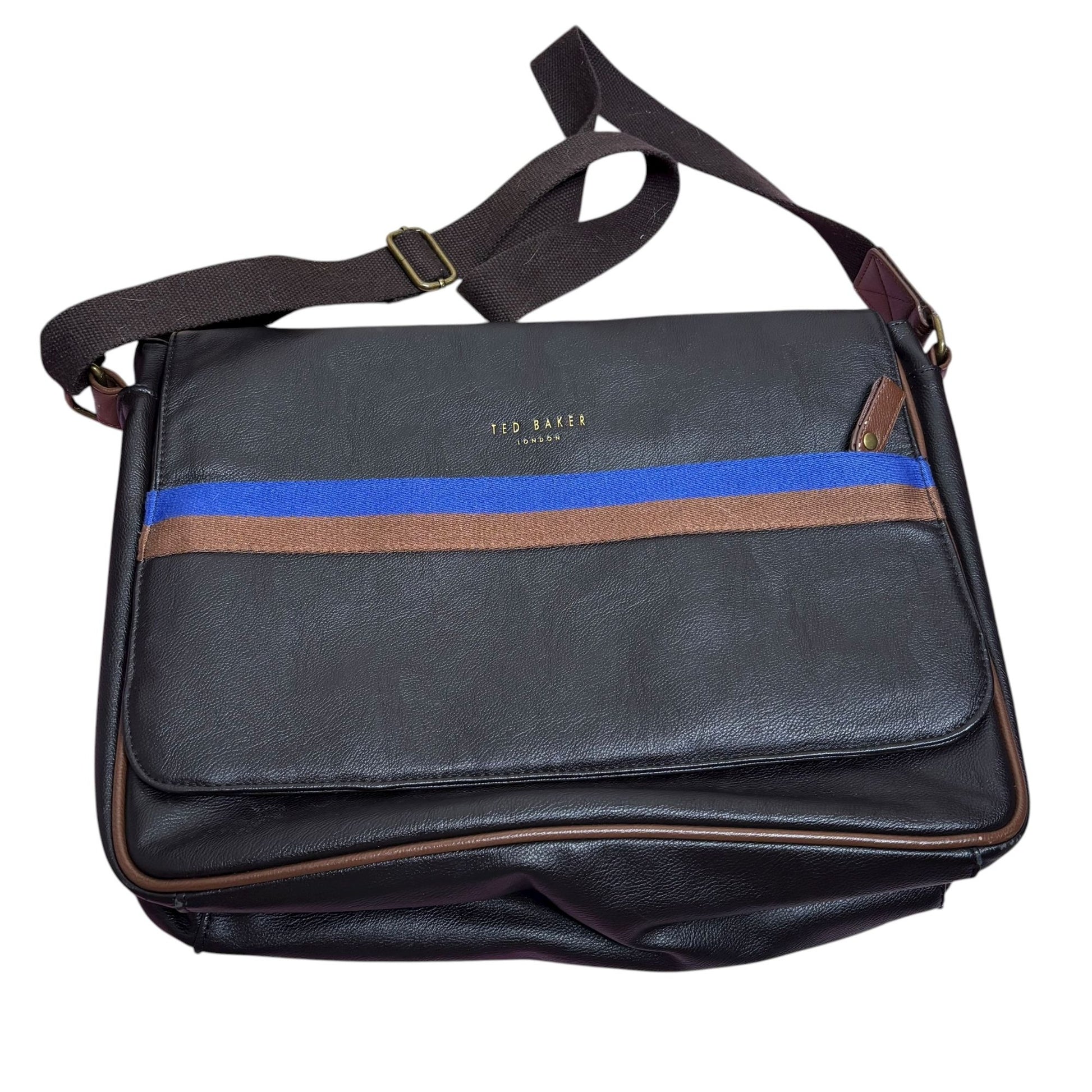 Ted Baker London Messenger Bag Brown Faux Leather Crossbody Blue Stripe Zipper