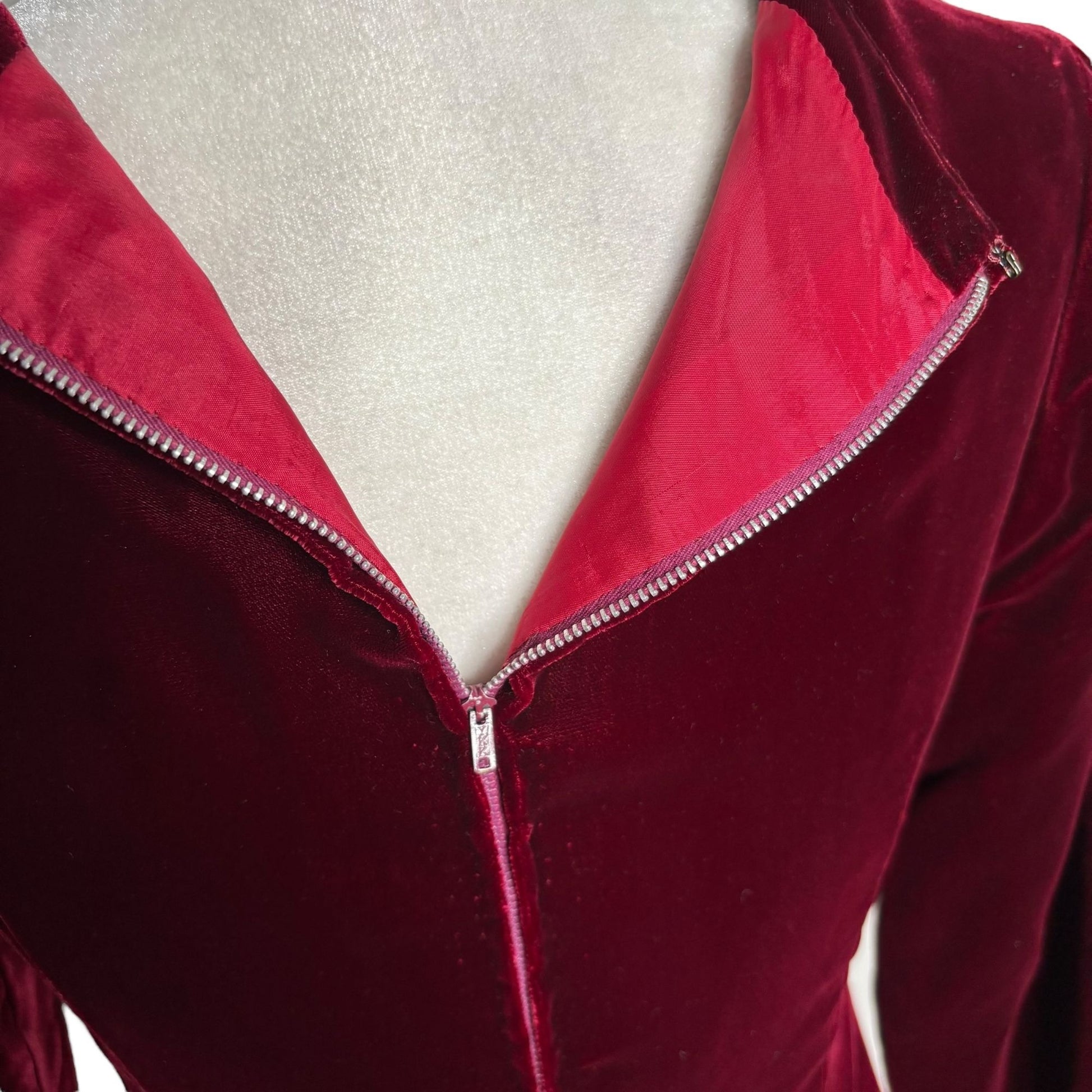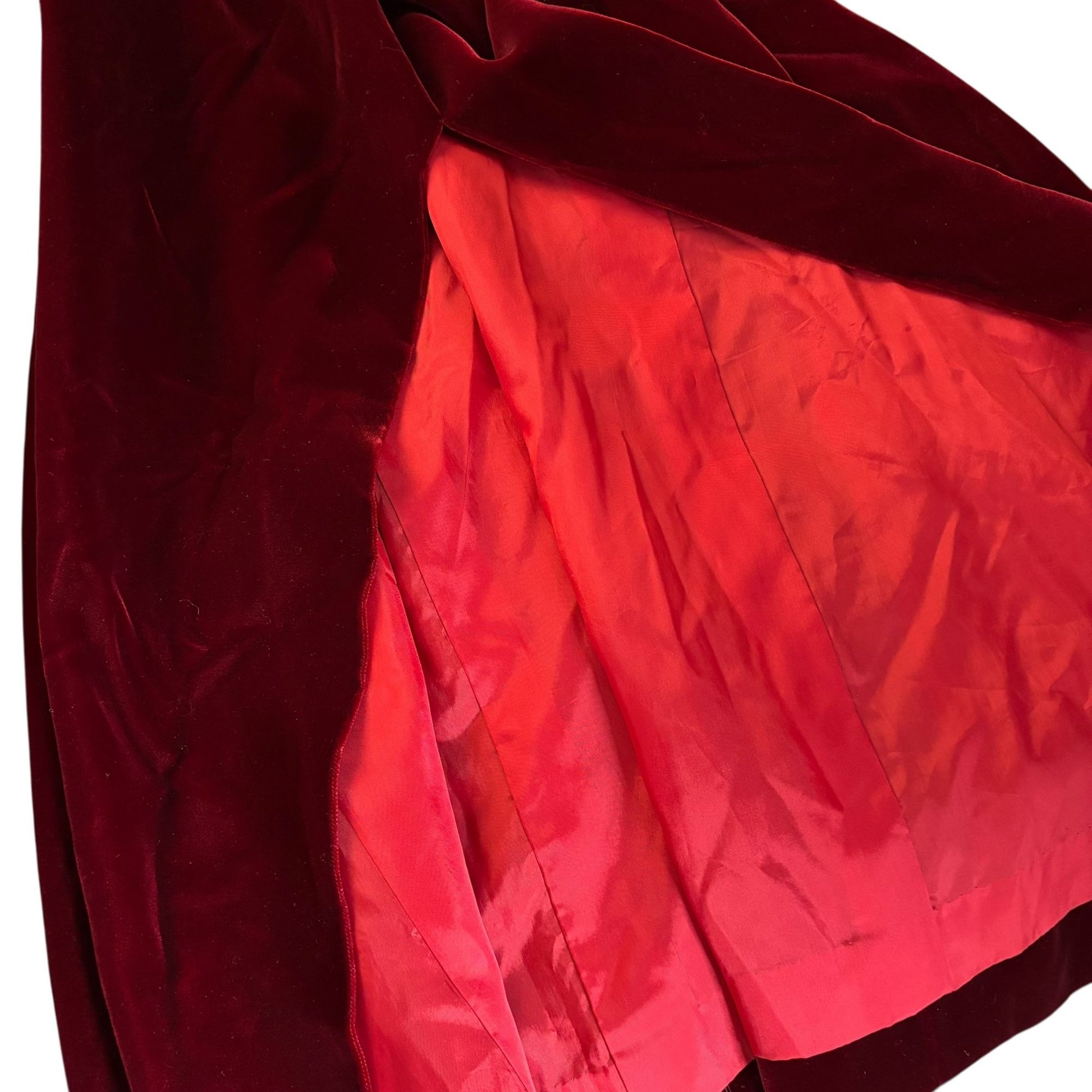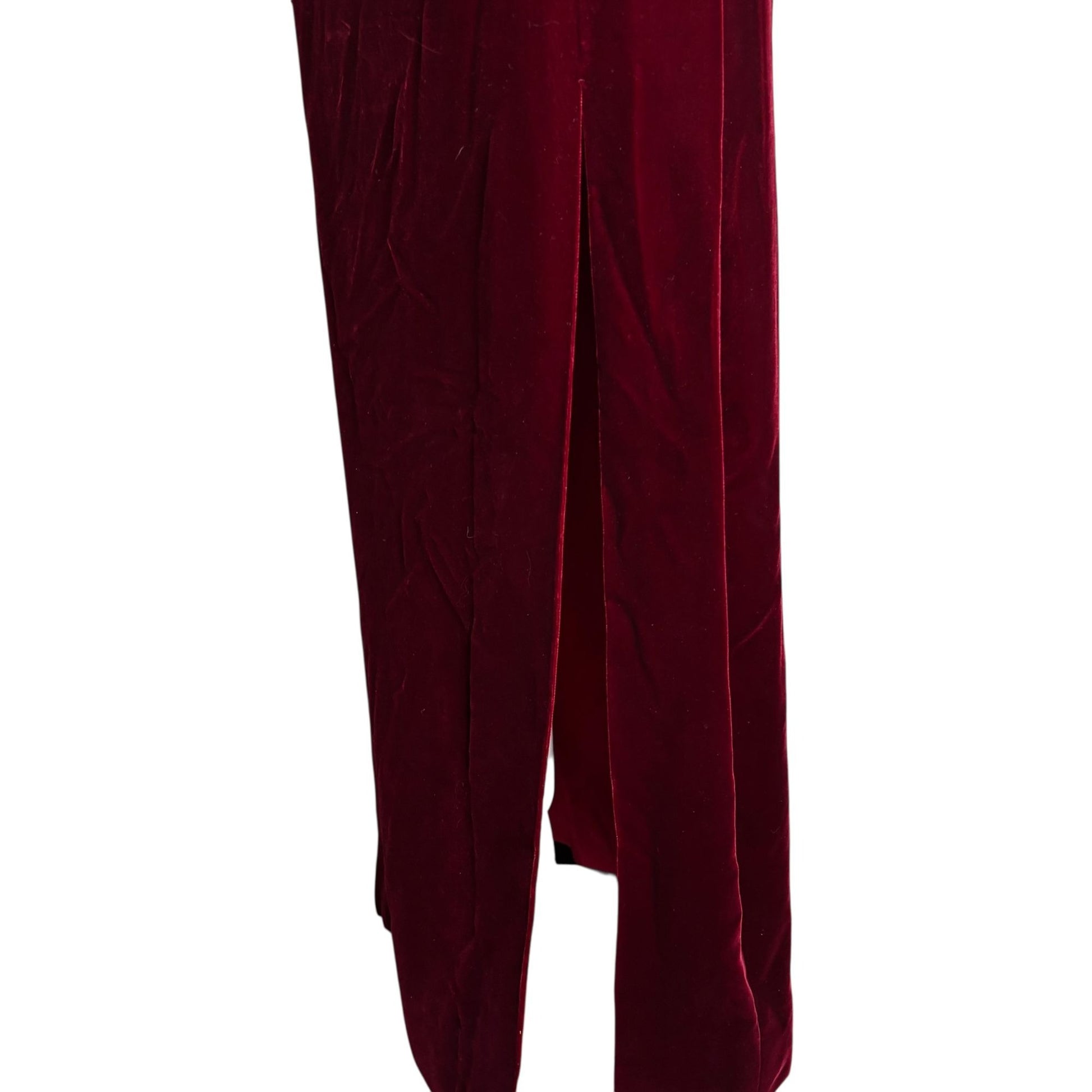 Vintage 50s Velvet Long Sleeve Maxi Dress Small Burgundy Red Lined Metal Zipper