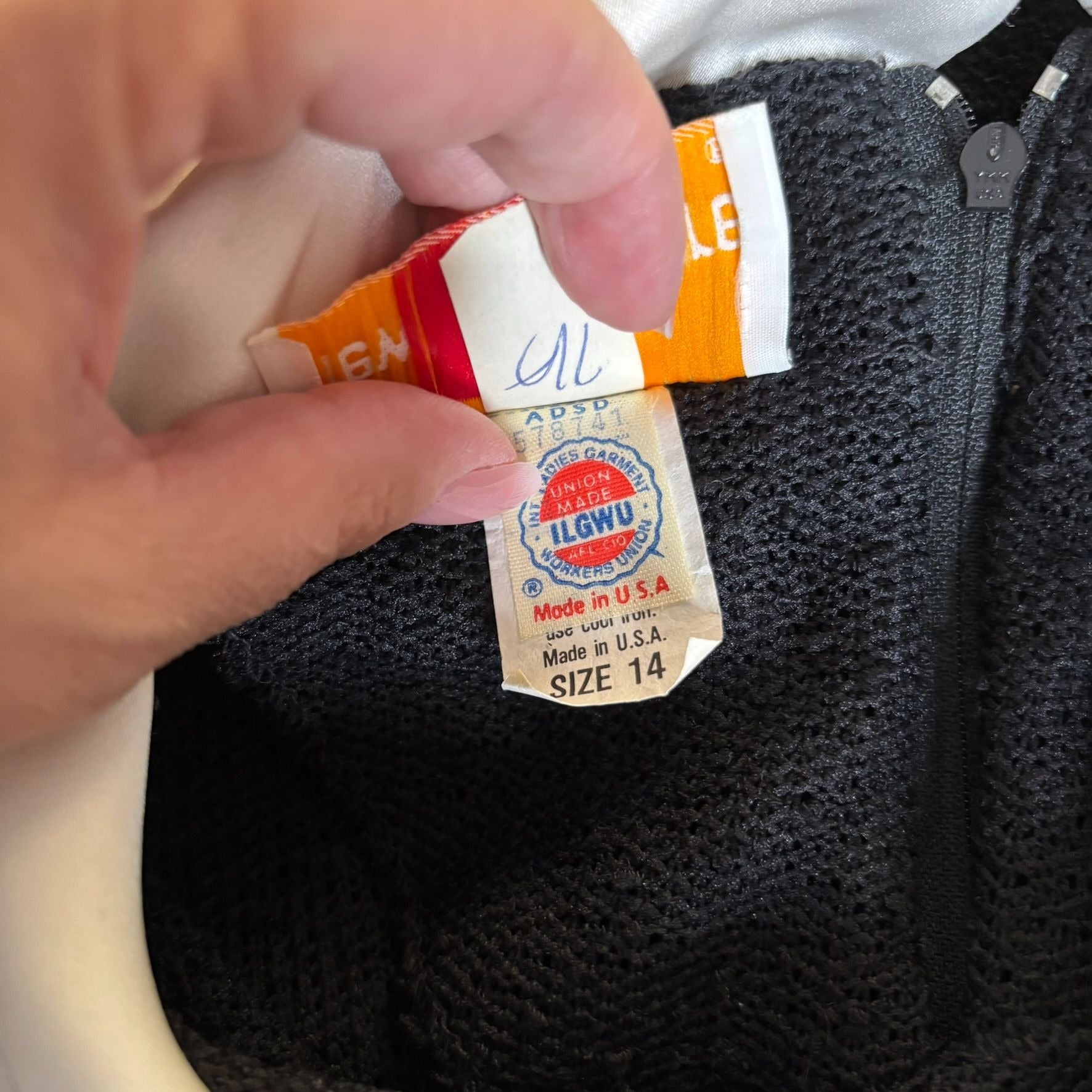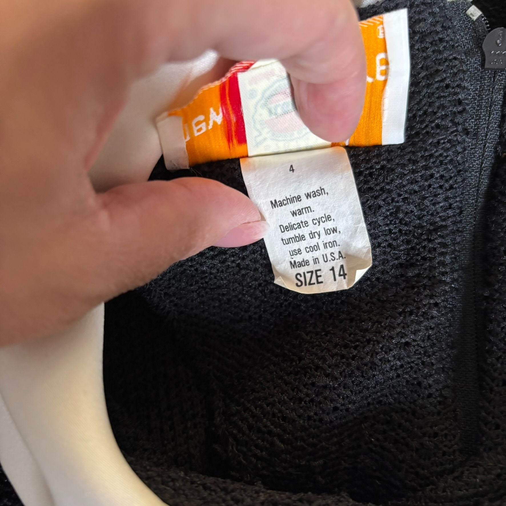 Vintage 70s Long Sleeve Knit Dress Medium Sheer Black Peter Pan Collar Zipper