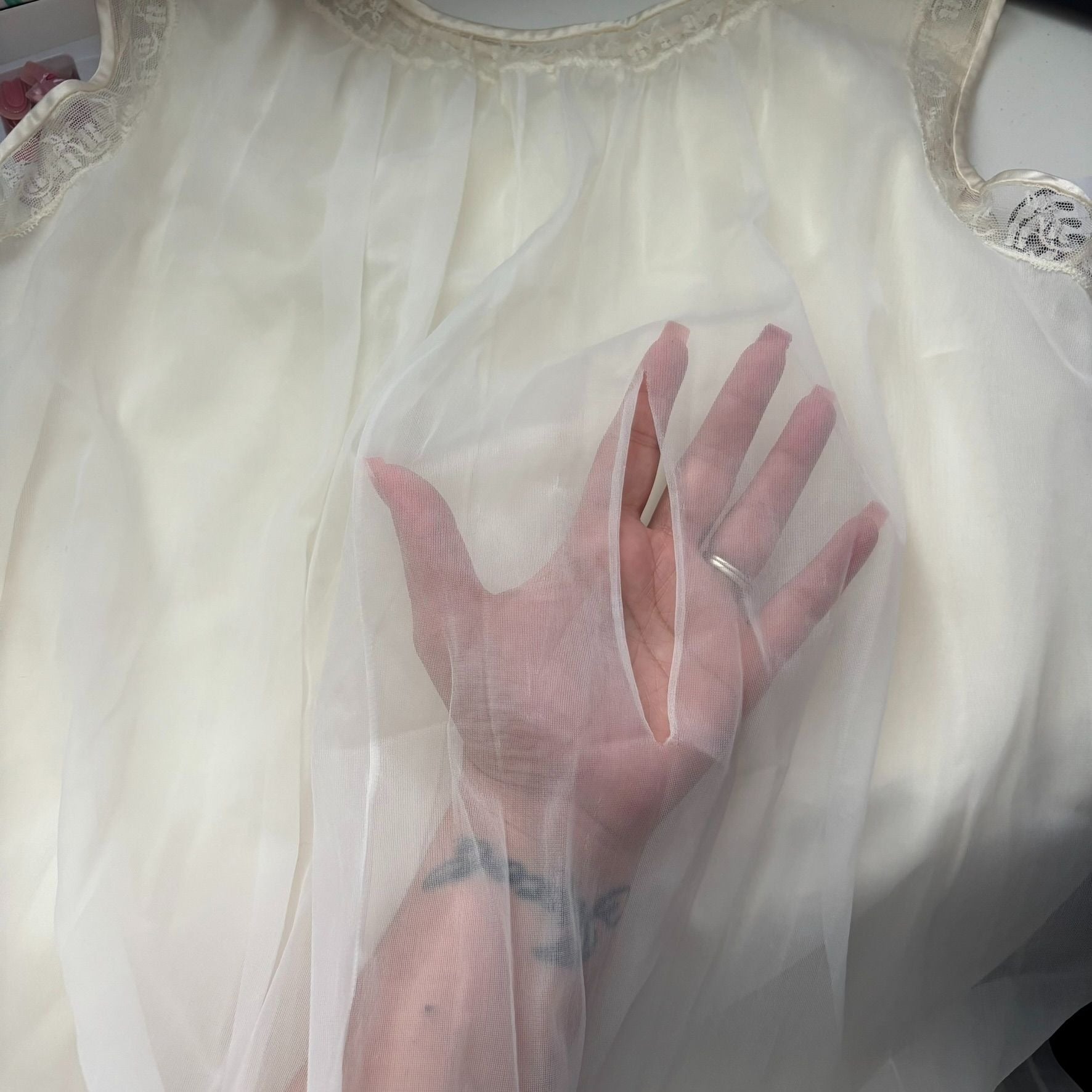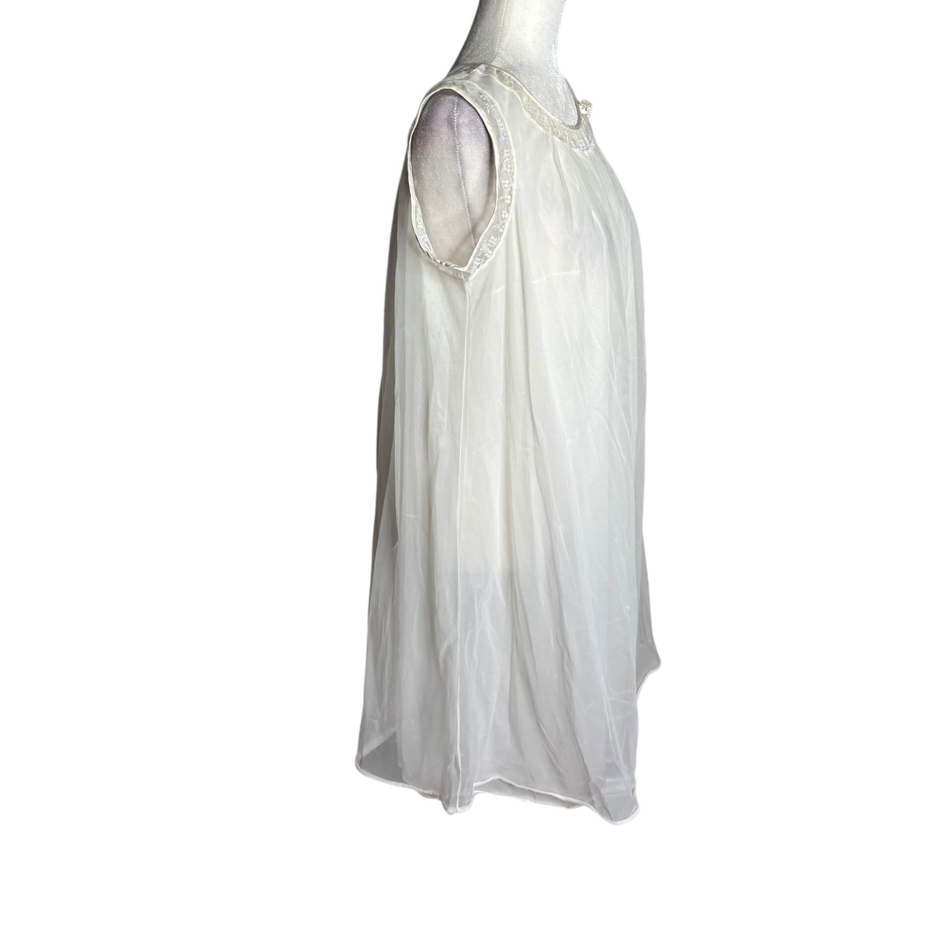Vintage 70s Sleeveless Sheer Mini Dress Nightgown Small Nylon Babydoll Lace