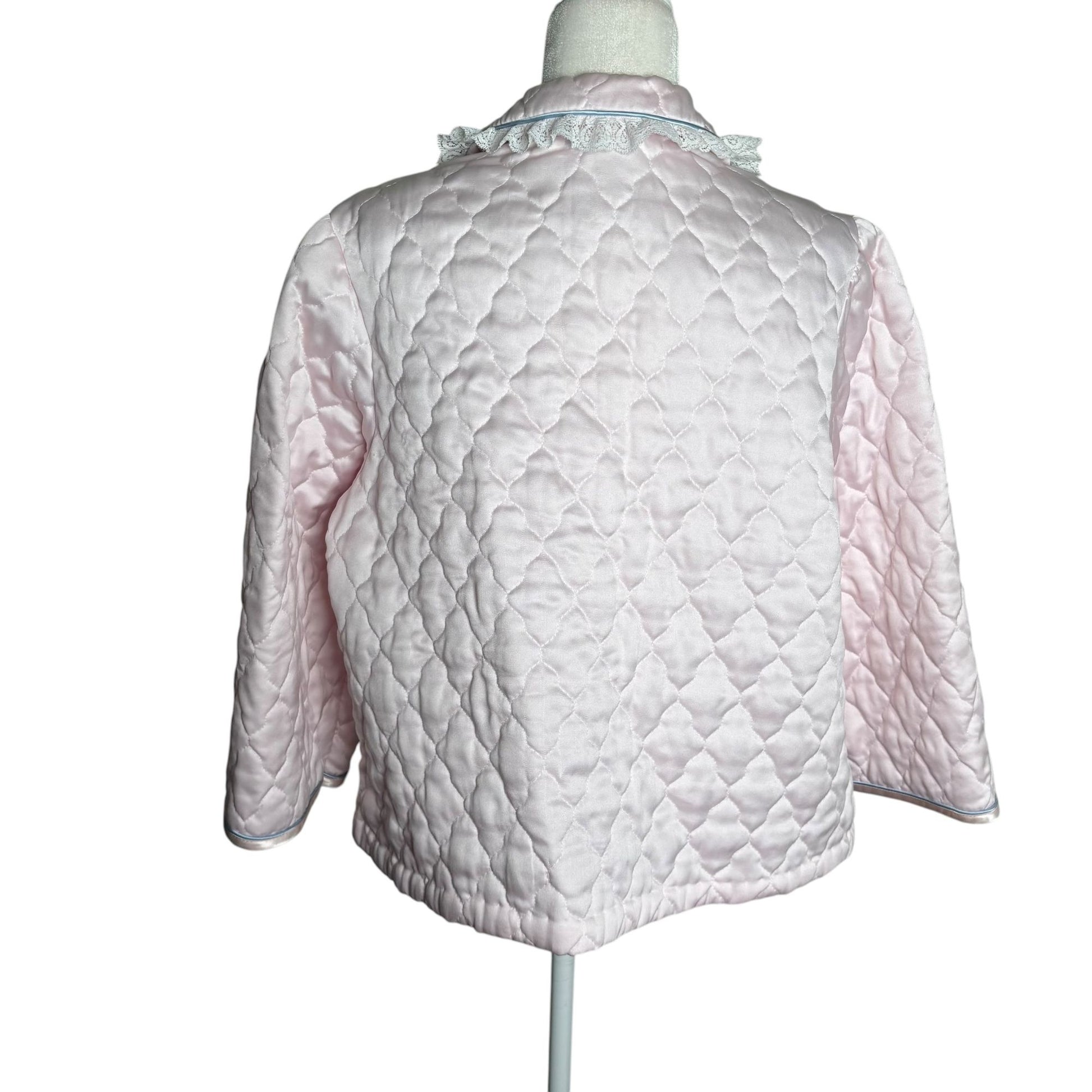 Vintage 80s Appel Quilted Bed Jacket Large Light Pink Lace Polyester Buttons