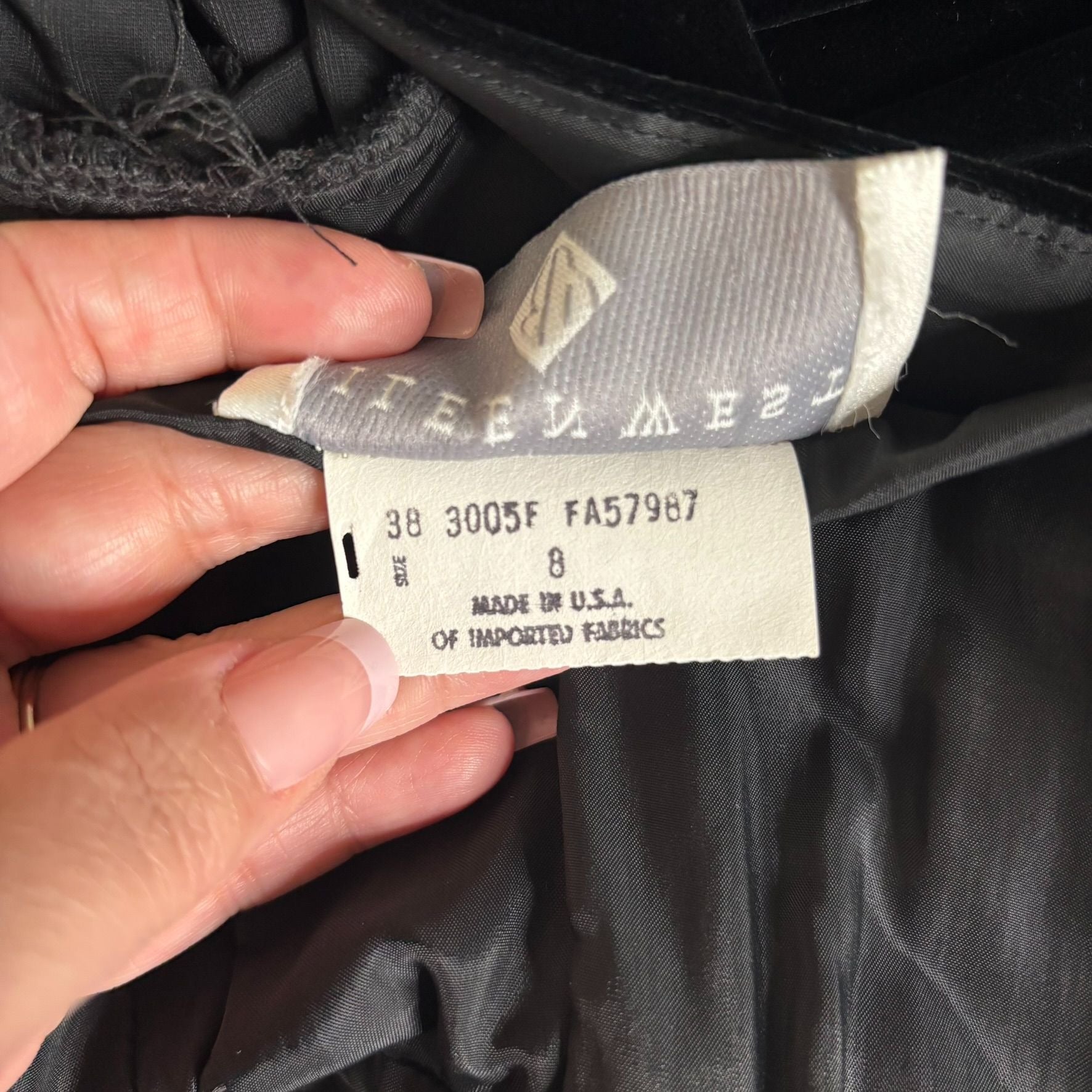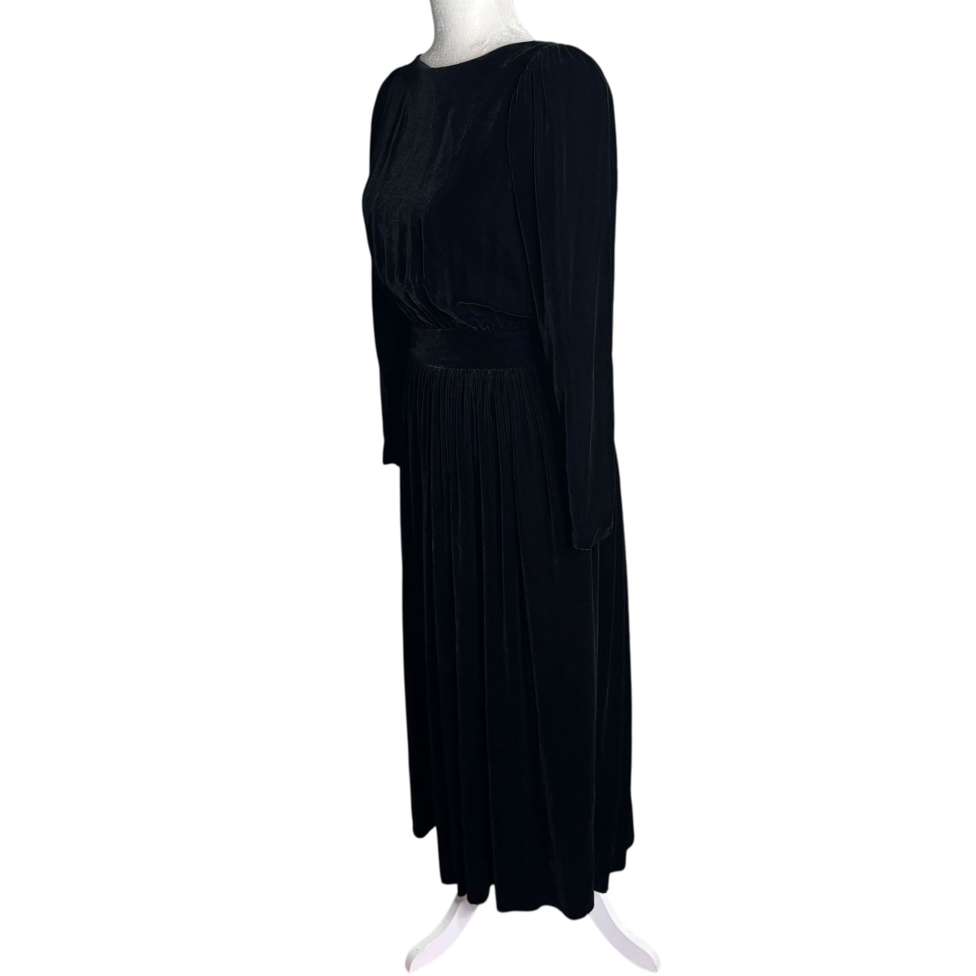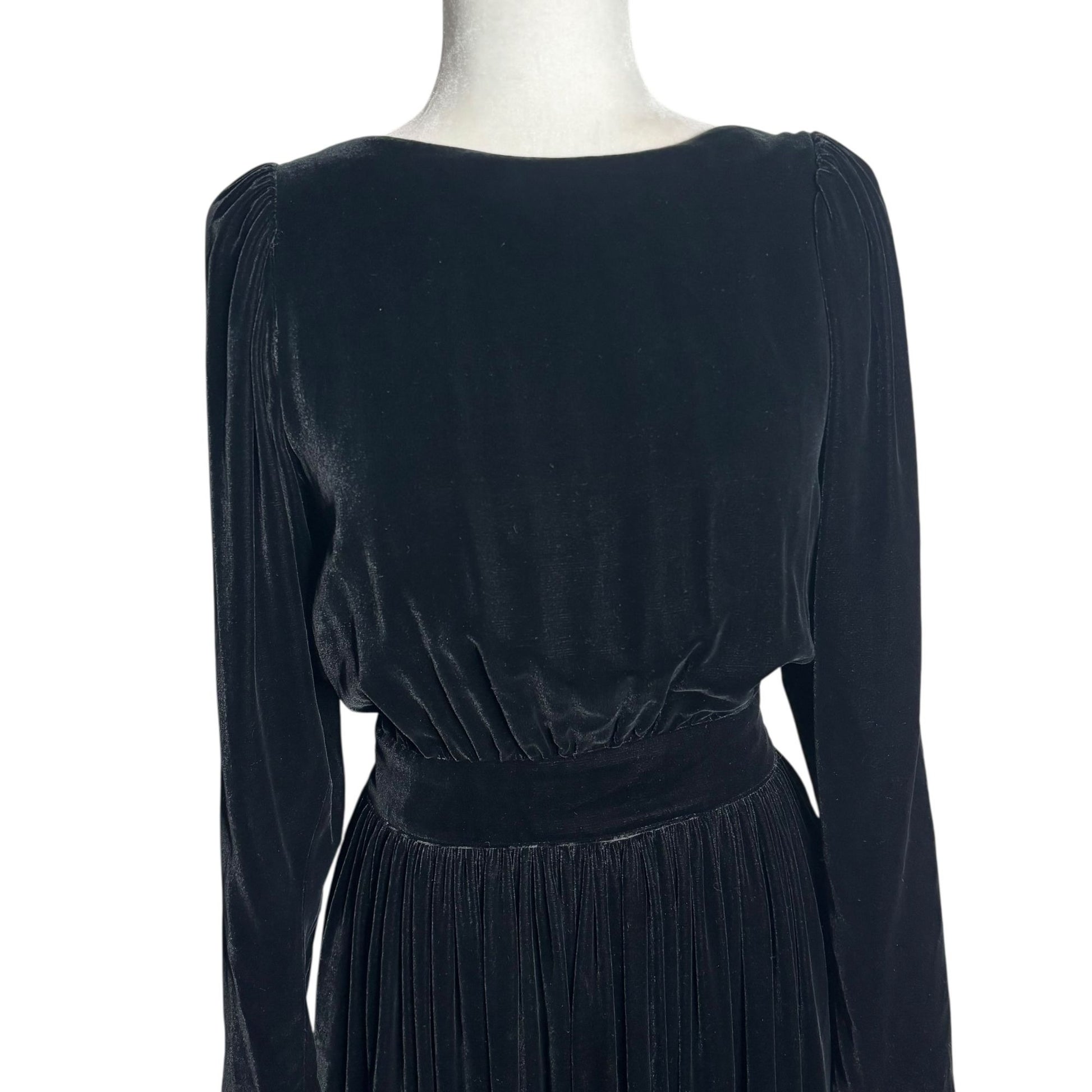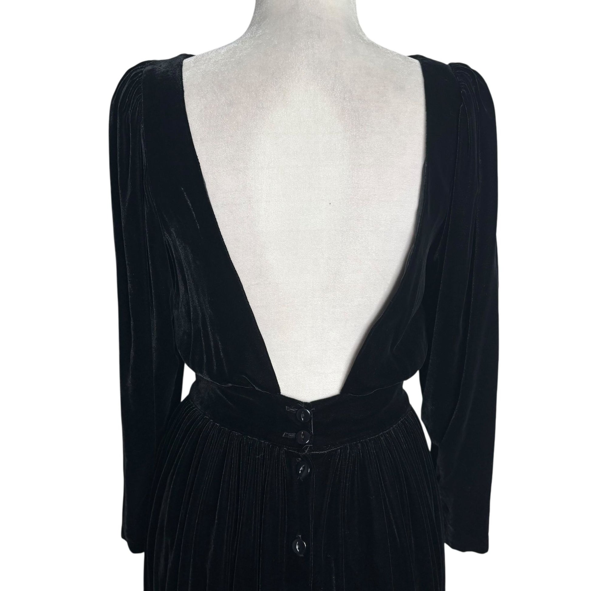 Vintage 80s Eileen West Velvet Backless Midi Dress Small Black Long Sleeves