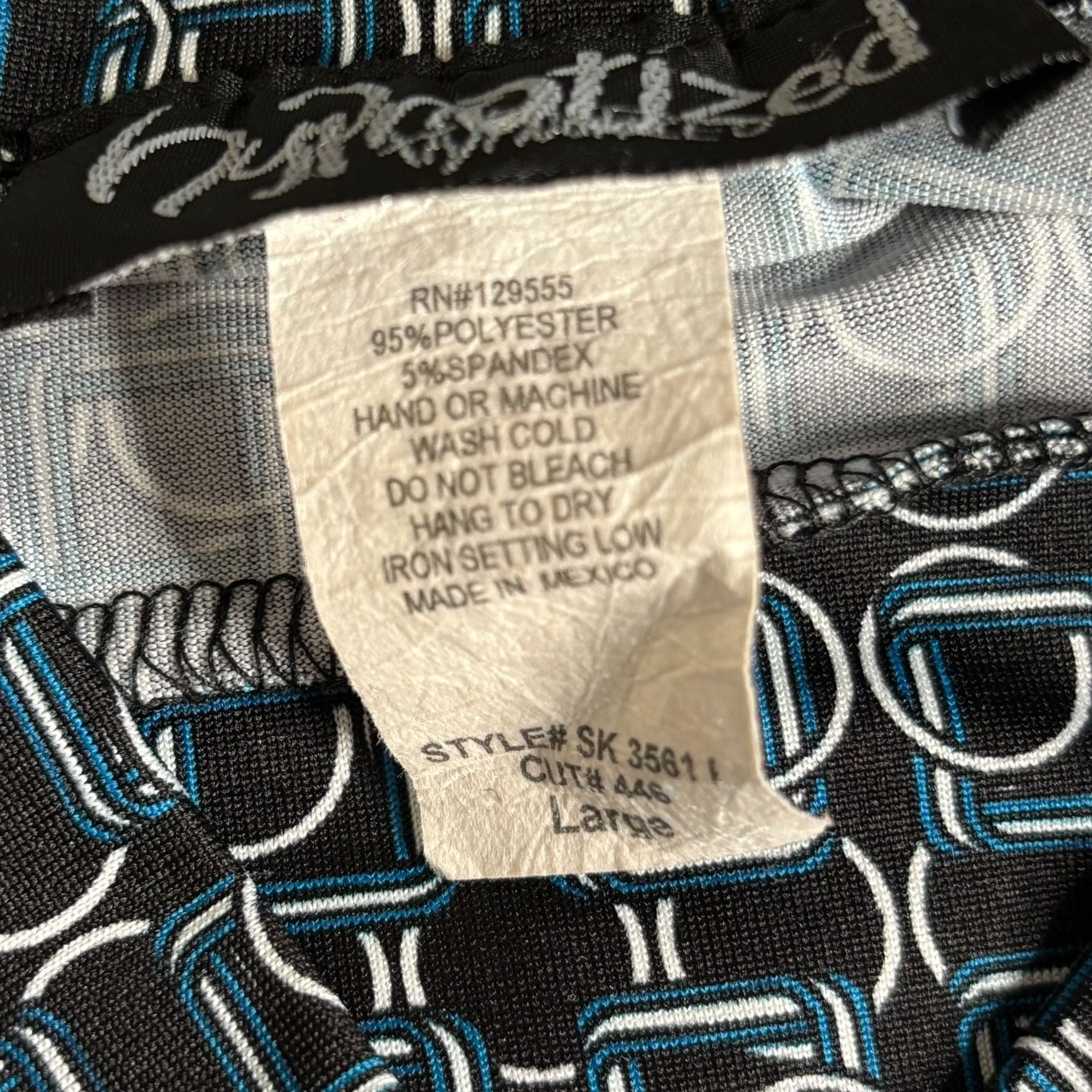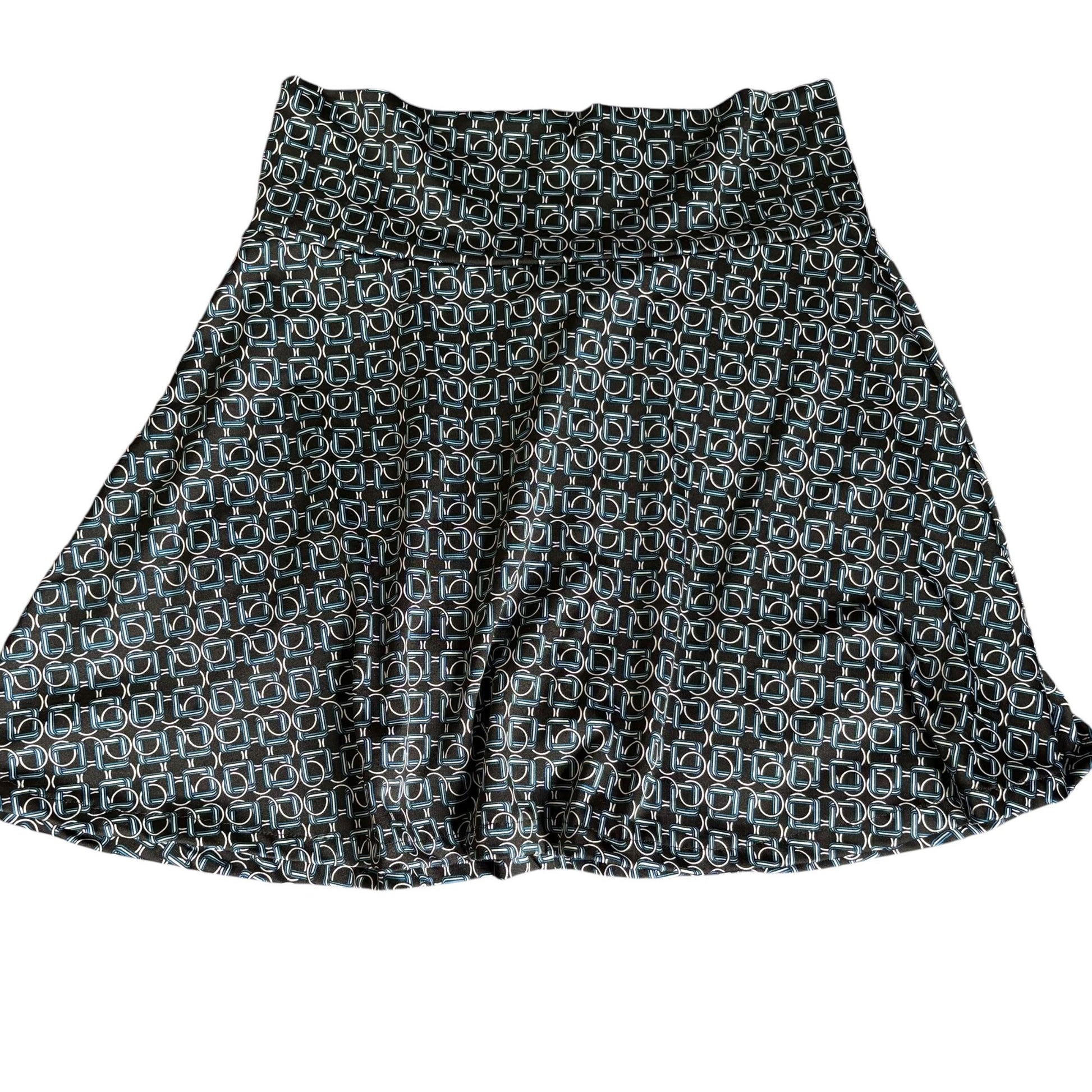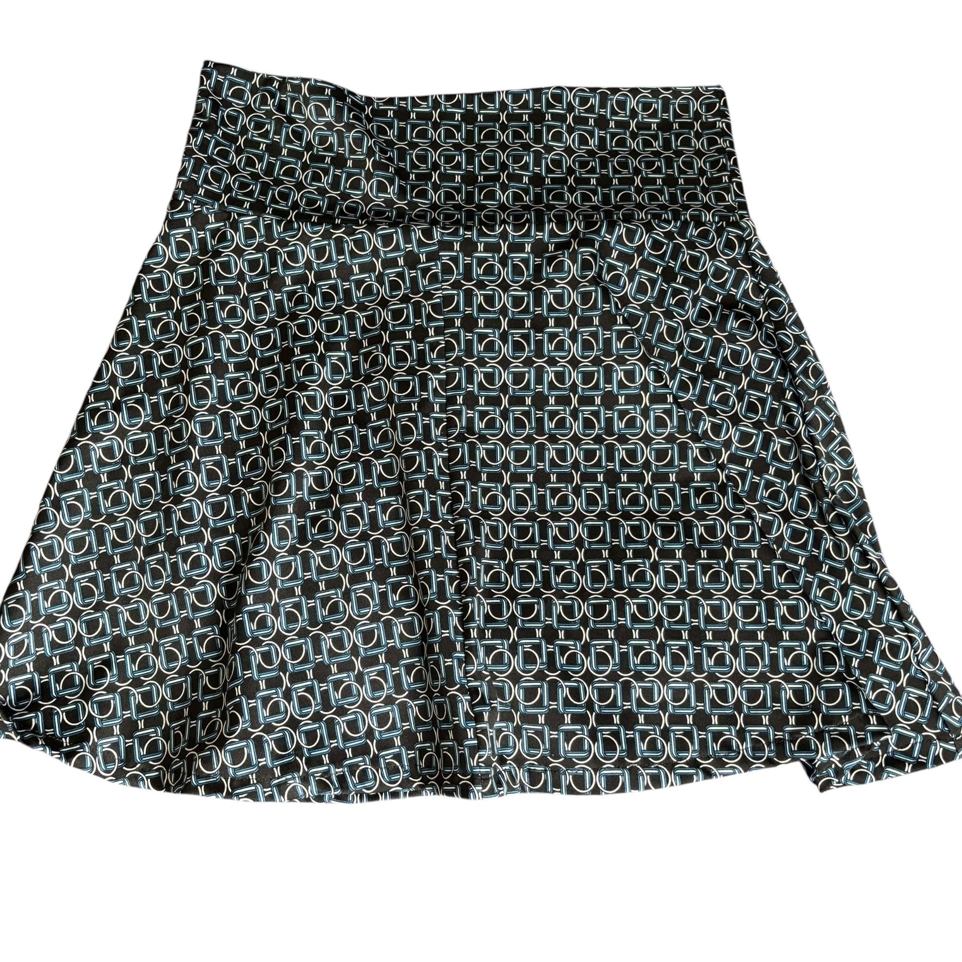 Vintage 90s Hypnotized Skater Skirt Medium Black Blue Geometric Stretch Unlined
