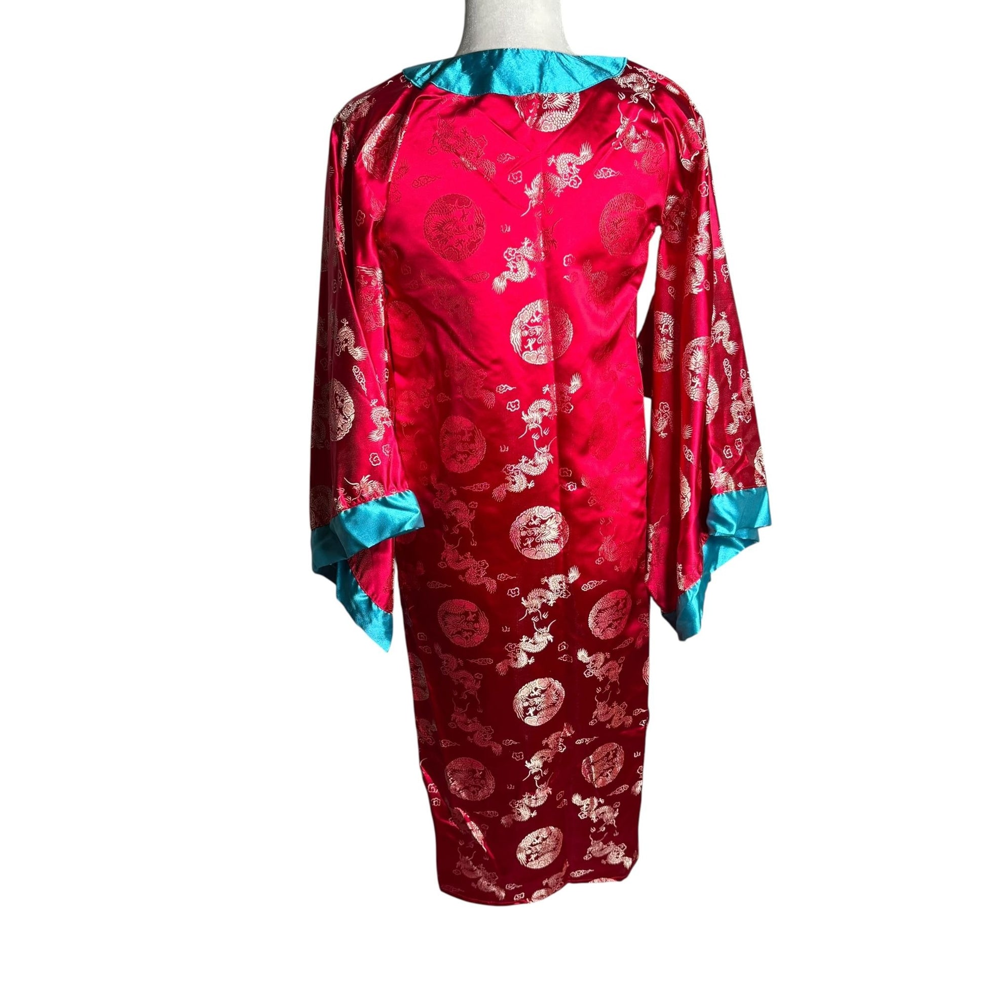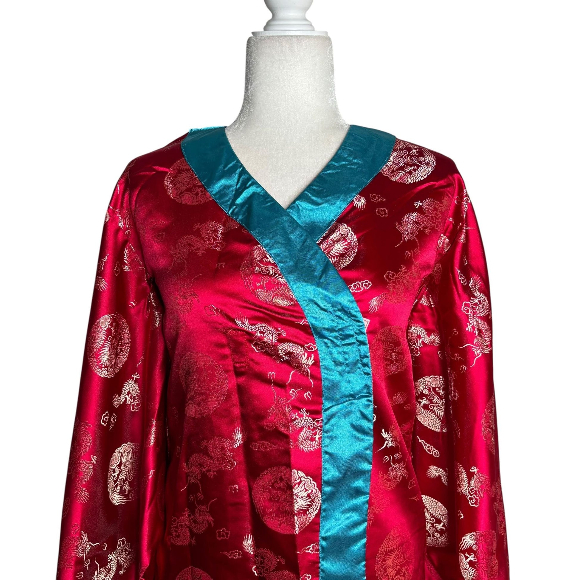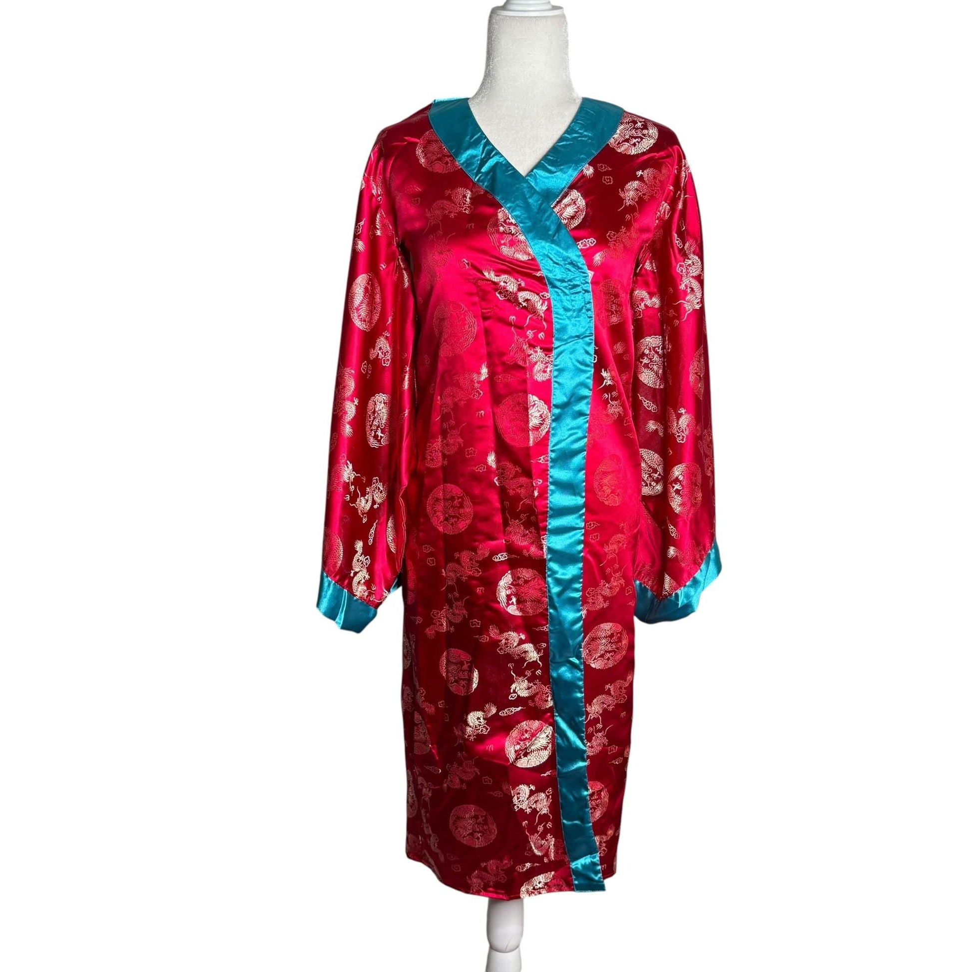 Vintage 90s Storybook Heirlooms Kimono Small Red Satin Dragon Long Sleeves