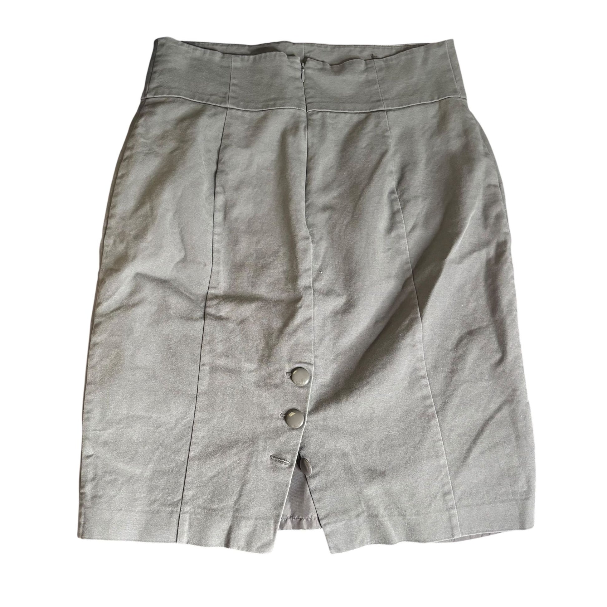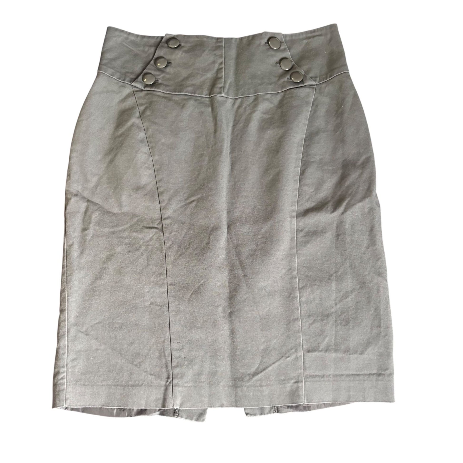 Worthington Gray Button Front High Waisted Pencil Skirt 12P Cotton Blend Petite